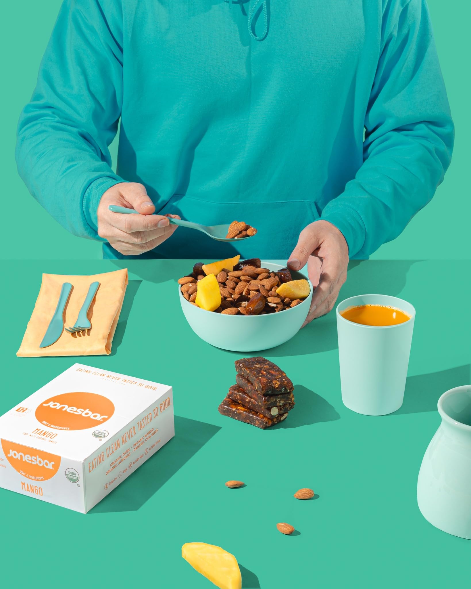 Q: What are the key ingredients in JONESBAR?A: JONESBAR is made with 5 or fewer simple ingredients, including high-grade organic mango and dates, ensuring no added sugars, natural flavorings, or fillers. This makes it a clean and healthy snack option.