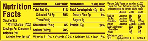 - Q: What are the dimensions of the packaging for the chimichangas? A: The packaging measures six point three inches in length, two inches in width, and zero point six inches in height.