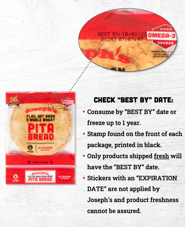 Q: How should I store Joseph's breads to maintain freshness?A: Joseph's breads are shipped fresh and should be consumed within two weeks or frozen unopened for up to one year to preserve freshness.