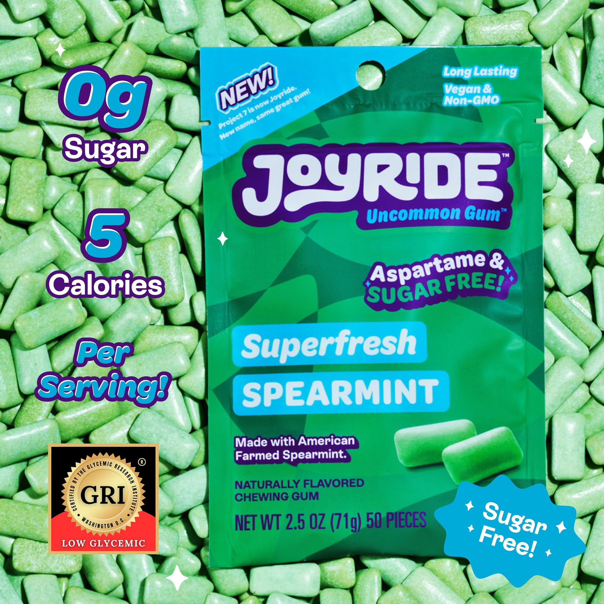 Q: How long does the flavor of Joyride Gum last?A: Joyride Gum offers a long-lasting spearmint flavor that is designed to refresh your breath and provide enjoyment for an extended period.