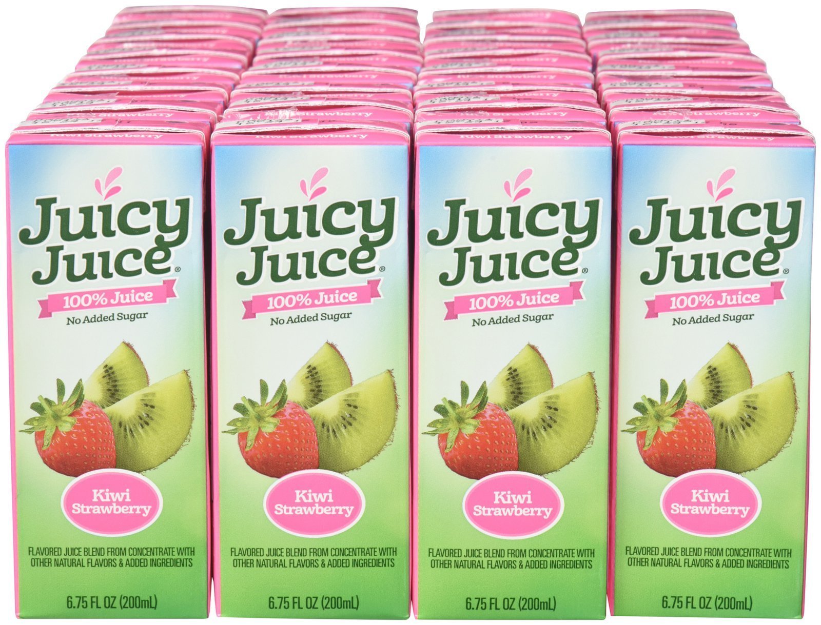 Q: What flavors does Juicy Juice Slim 8 Pack offer?A: The Juicy Juice Slim 8 Pack features a delicious kiwi strawberry flavor that kids love, providing a tasty way to enjoy fruit juice.