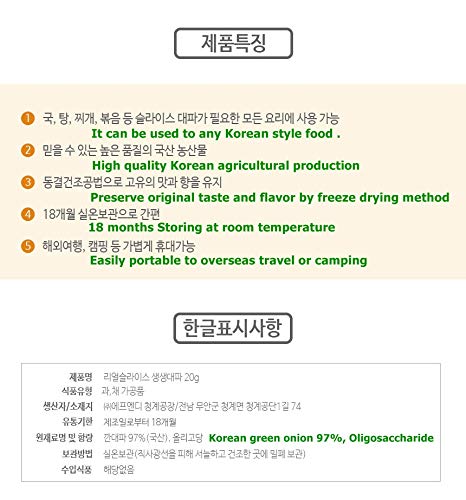 - Q: What are the benefits of using Haepyo Freeze Dried Sliced Green Onion? A: Haepyo Freeze Dried Sliced Green Onion preserves the unique taste and flavors of fresh Korean green onion through a freeze-drying process. This method ensures a long shelf life while retaining nutrients, making it ideal for cooking and enhancing various dishes.