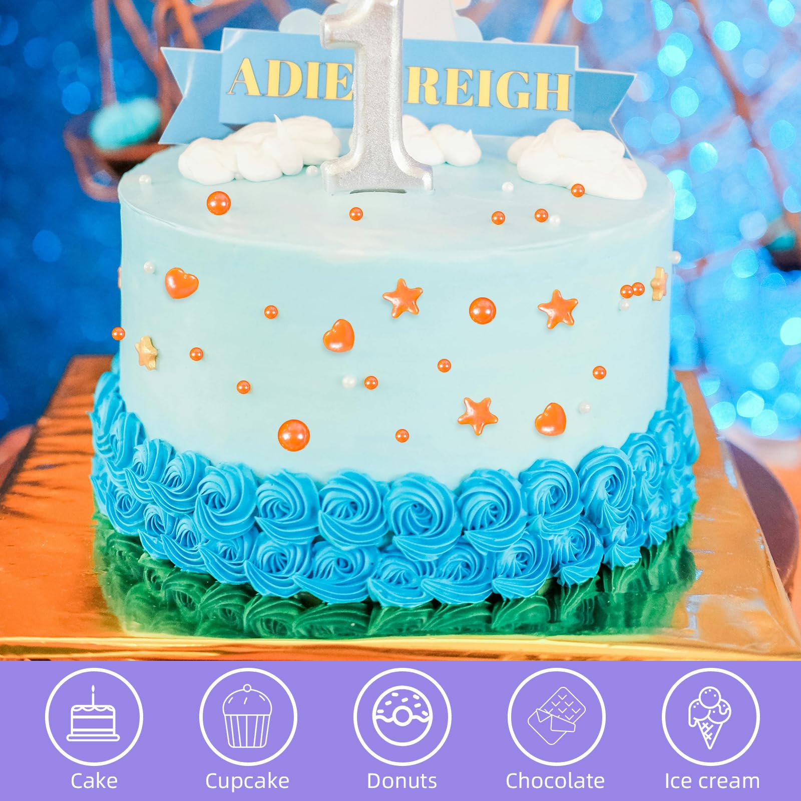 'Delicious Sugar Pearls, Mix And Match, Delicate And Romantic, Perfect For Garnishing All Kinds Of Delicious Food! Product Name: Orange Pearl Sprinkle. Product Ingredients: Sugar, Beetroot, Spirulina, Carnauba Wax, Gluten Free, Nut Free. Product Weight: 200G / 4.58Oz. Product Color: Gold. Package Includes: 1 Bottle Of Orange Pearl Sprinkles. Feature: 1. Cupcake Sprinkles, Of Different Sizes, Can Be Matched With Various Foods To Increase Food Decoration, Which Is Beautiful And Attractive. 2. Candy Cake Decorations Can Be Widely Used, Very Suitable For Baking Cakes, Biscuits, Ice Cream, Cupcakes.''