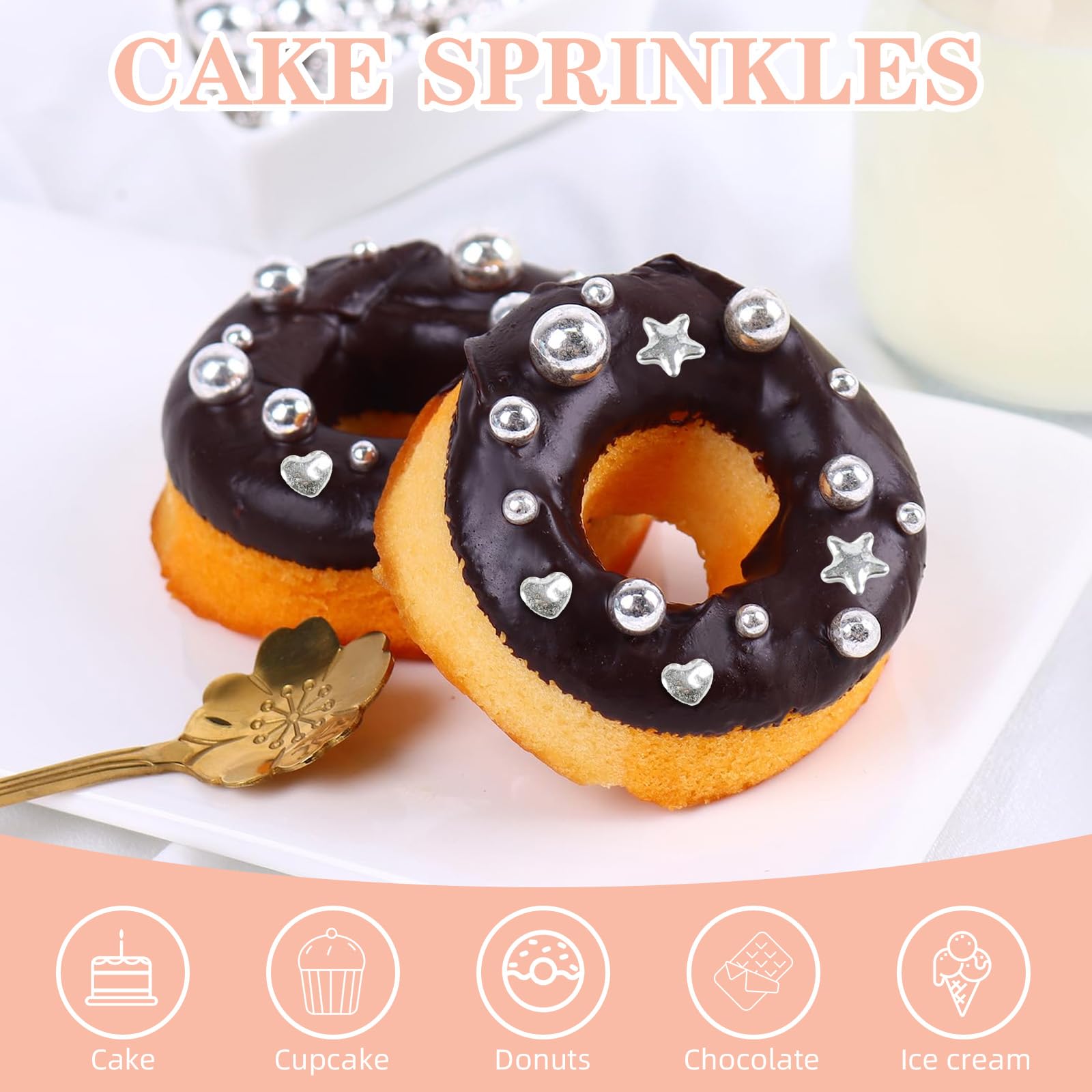 The Delicate Pearl Sugar Sprinkles Add A Shiny Look To Your Cakes, Desserts, Ice Cream And Drinks, Instantly Enhancing The Visual Effect And Making Your Food More Attractive. Please Store In A Cool And Dry Place, Avoid Moisture And High Temperature To Maintain The Quality And Taste Of The Sugar Sprinkles. Product Name: Confect Sprinkles For Cakes & Cupcakes Product Material: Sugar, Corn Starch, Food Coloring (Natural) Product Weight: 230G/8.1Oz. Shelf Life: 18 Months. Product Color: Silver. Product Quantity: 1 Piece. Features: 1. Simply Sprinkle On Cakes, Desserts Or Drinks To Create A Gorgeous Decorative Effect. Colorful Edible Candy Pearls Can Be Used To Decorate Cakes, Cookies, Ice Cream, Cupcakes, Donuts, Adding Creativity. 2. Sprinkles For Cake Decorating Is Suitable For Various Occasions Such As Birthday Parties, Weddings, Holiday Celebrations, Etc., Making Your Baking Works Unique And It Is An Ideal Choice For Baking Enthusiasts. 3. The Larger The Sugar, The Harder It Is. It Is Normal For Large Candies To Be Harder. It Is Edible. It Is Recommended To Decorate Items After Baking To Prevent The Edible Pearls From Melting During The Baking Process.