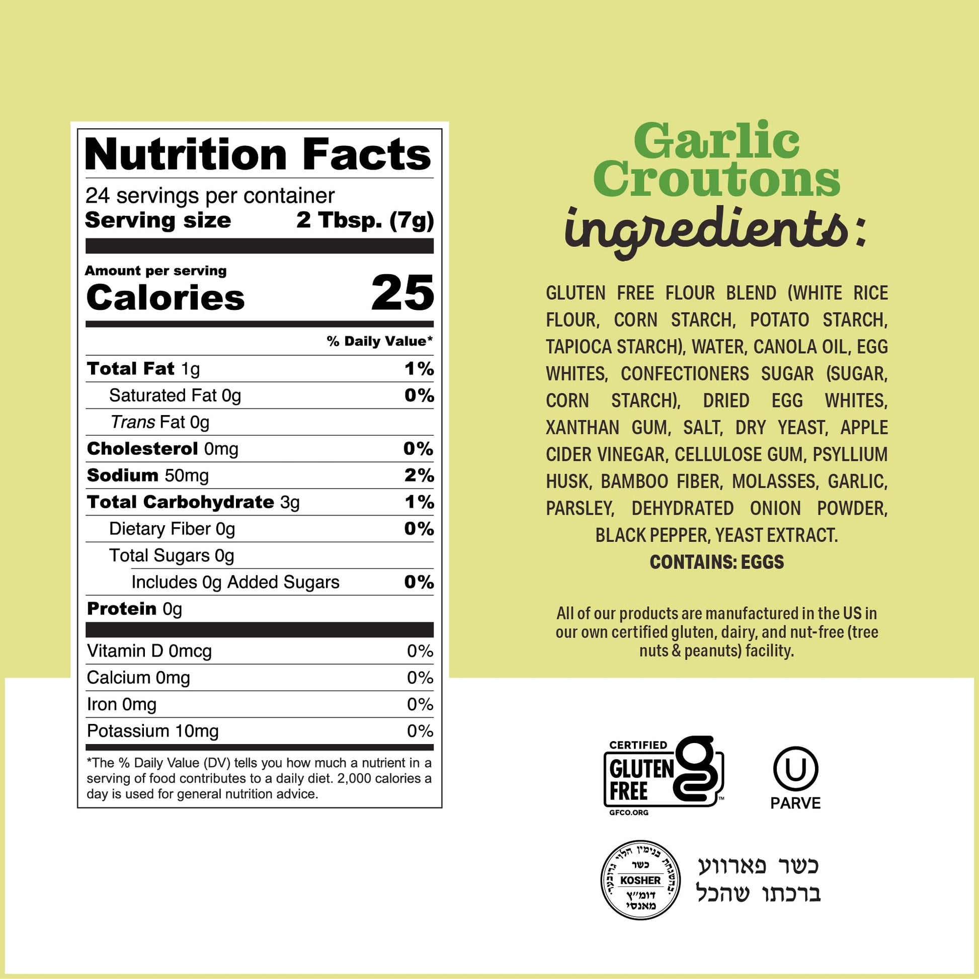 Elevate Your Meals With The Katz Gluten Free Croutons Variety Pack! Featuring 1 Pack Of Garlic & 1 Pack Of Herb Seasoned Croutons, This Flavorful Duo Is Perfect For Adding A Crunchy, Savory Twist To Your Salads, Soups, And Stuffing. Made In Our Certified Gluten-Free Bakery, These Croutons Are Allergy-Friendly-Dairy-Free, Soy-Free, And Nut-Free-So Everyone At The Table Can Enjoy Them. Kosher-Certified And Made In The Usa, Katz Croutons Deliver The Quality And Taste You Can Trust. Whether Youre Topping A Salad Or Exploring Creative Recipes, These Versatile Croutons Are A Must-Have In Your Breadcrumbs And Stuffing Collection.