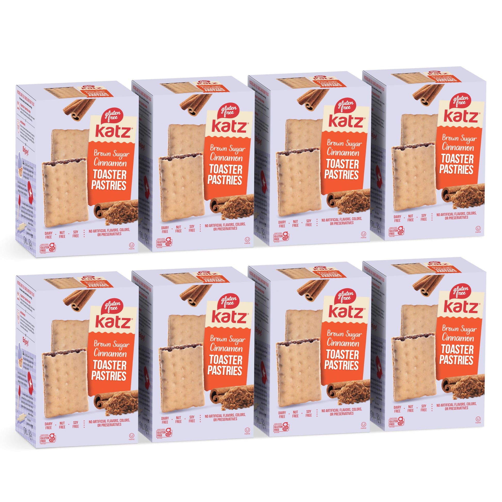 - Q: What flavors do Katz Gluten Free Toaster Pastries come in? A: Currently, Katz Gluten Free Toaster Pastries are available in a delicious cinnamon flavor, featuring a sweet cinnamon filling wrapped in a soft, flaky pastry crust.