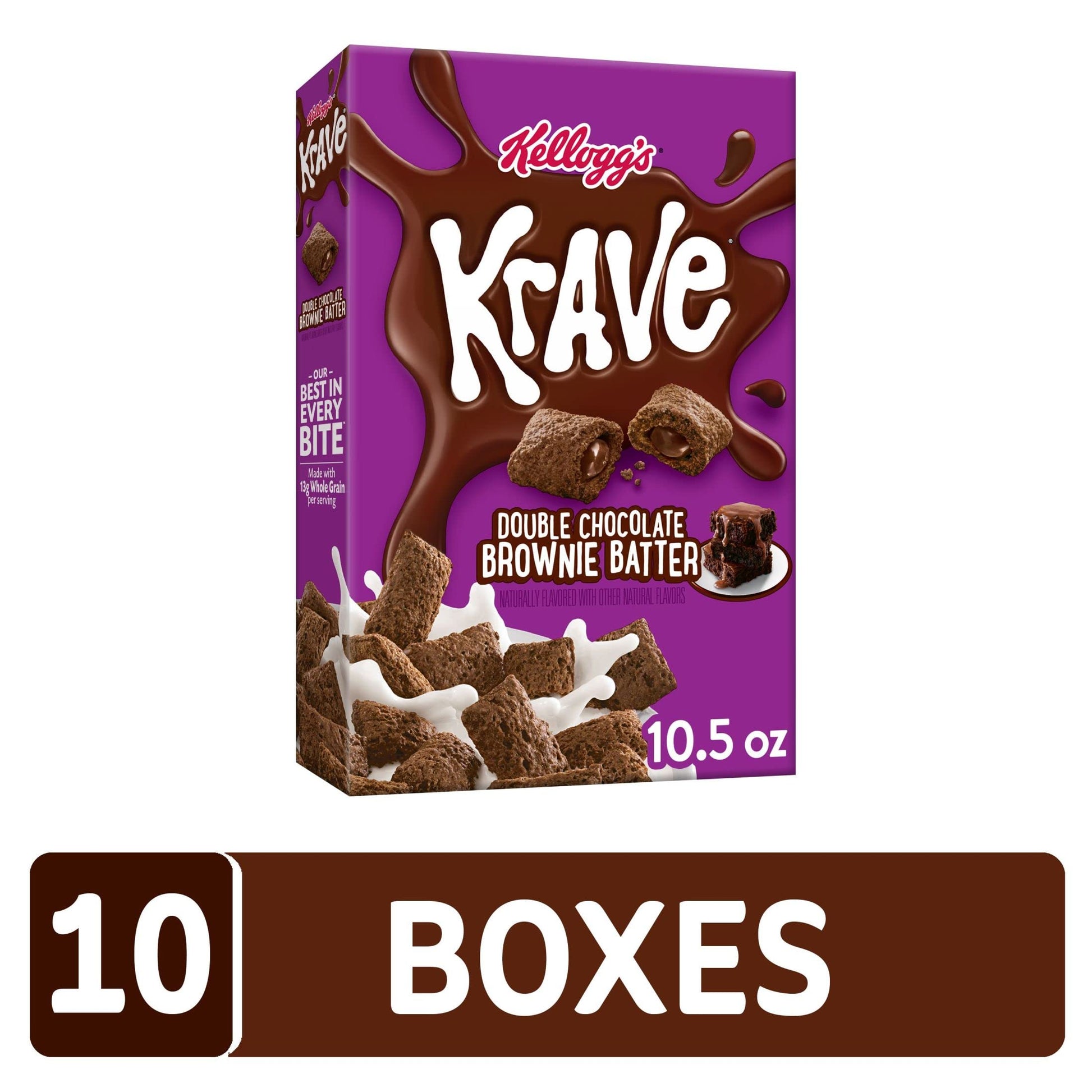 - Q: What packaging does Kellogg's Krave come in, and how can I ensure its freshness? A: Kellogg's Krave Brownie Batter cereal is packaged in 10, 10.5-ounce boxes, designed to maintain freshness and great taste. To ensure optimal freshness, store the boxes in a cool, dry place and keep them sealed after opening.