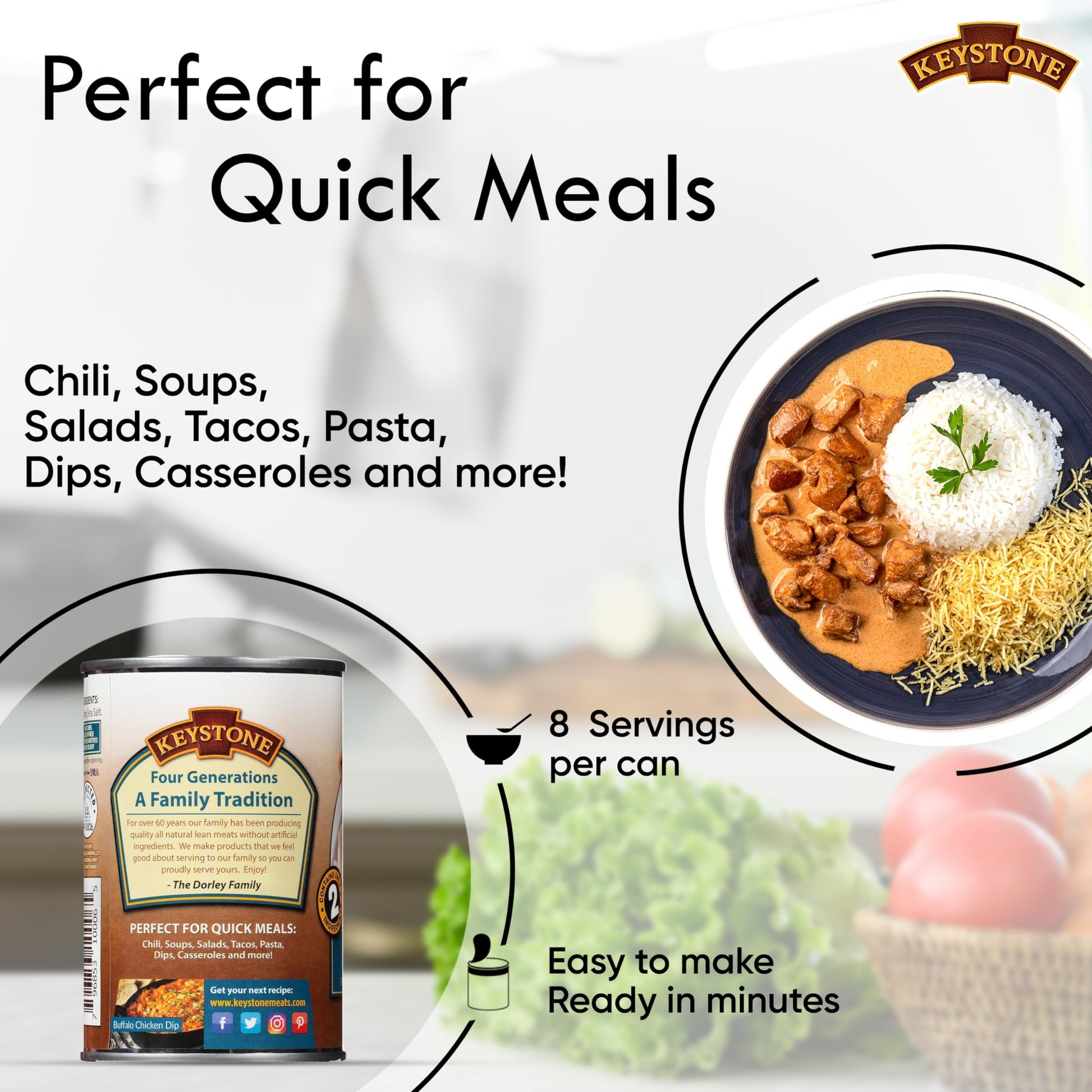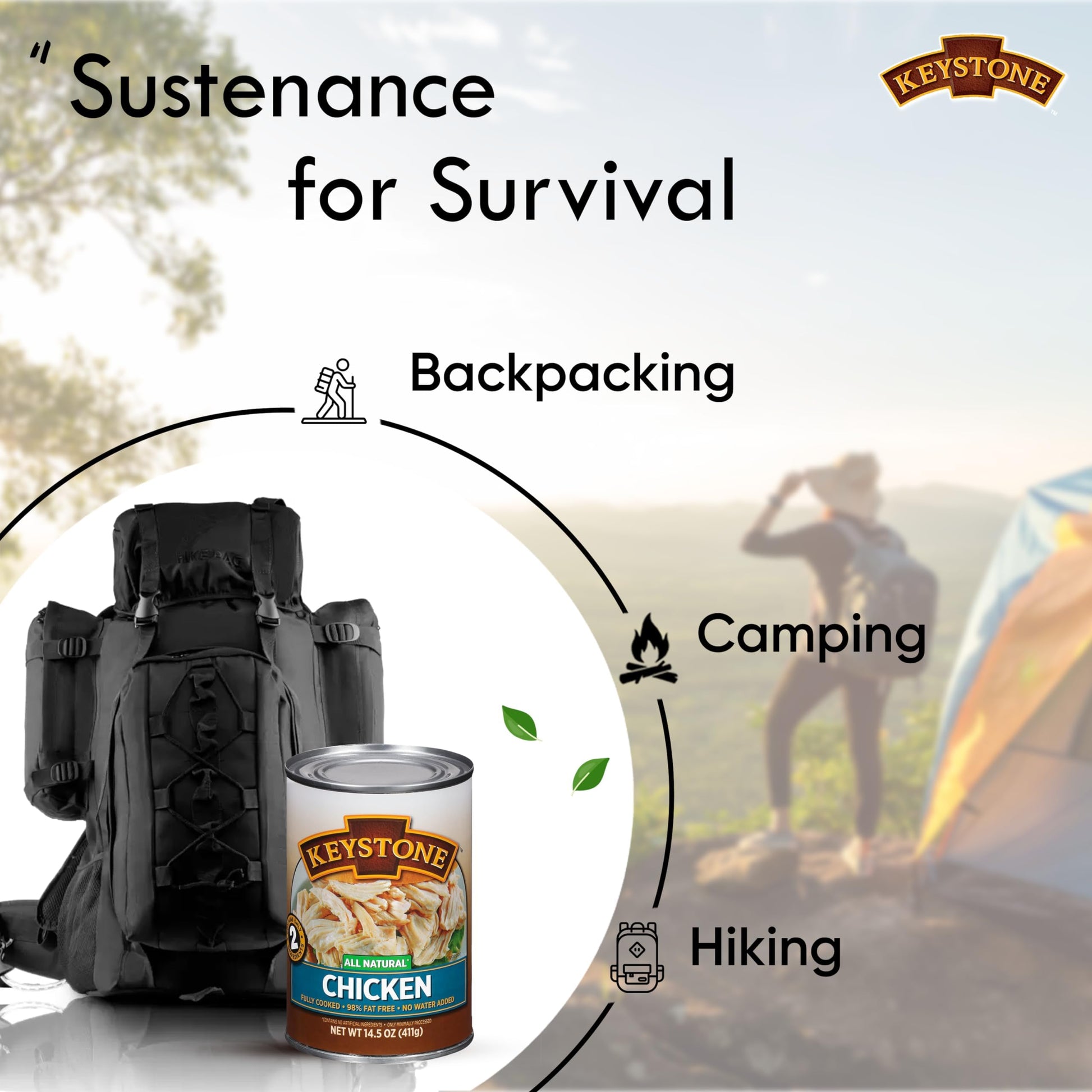 Introducing Keystone All Natural Premium Canned Chicken, a convenient and nutritious option for quick meals and emergency food supplies. This fully cooked canned chicken is ideal for those seeking a protein-rich food source that requires no preparation and is easy to incorporate into various dishes.