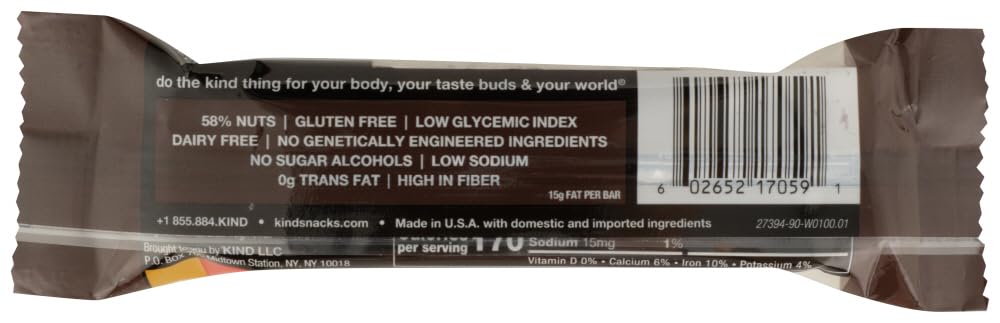 Q: What are the main ingredients in KIND Dark Chocolate Mocha Almond bars?A: KIND Dark Chocolate Mocha Almond bars primarily contain heart-healthy almonds, dark chocolate, and a blend of aromatic spices, making them both nutritious and delicious.