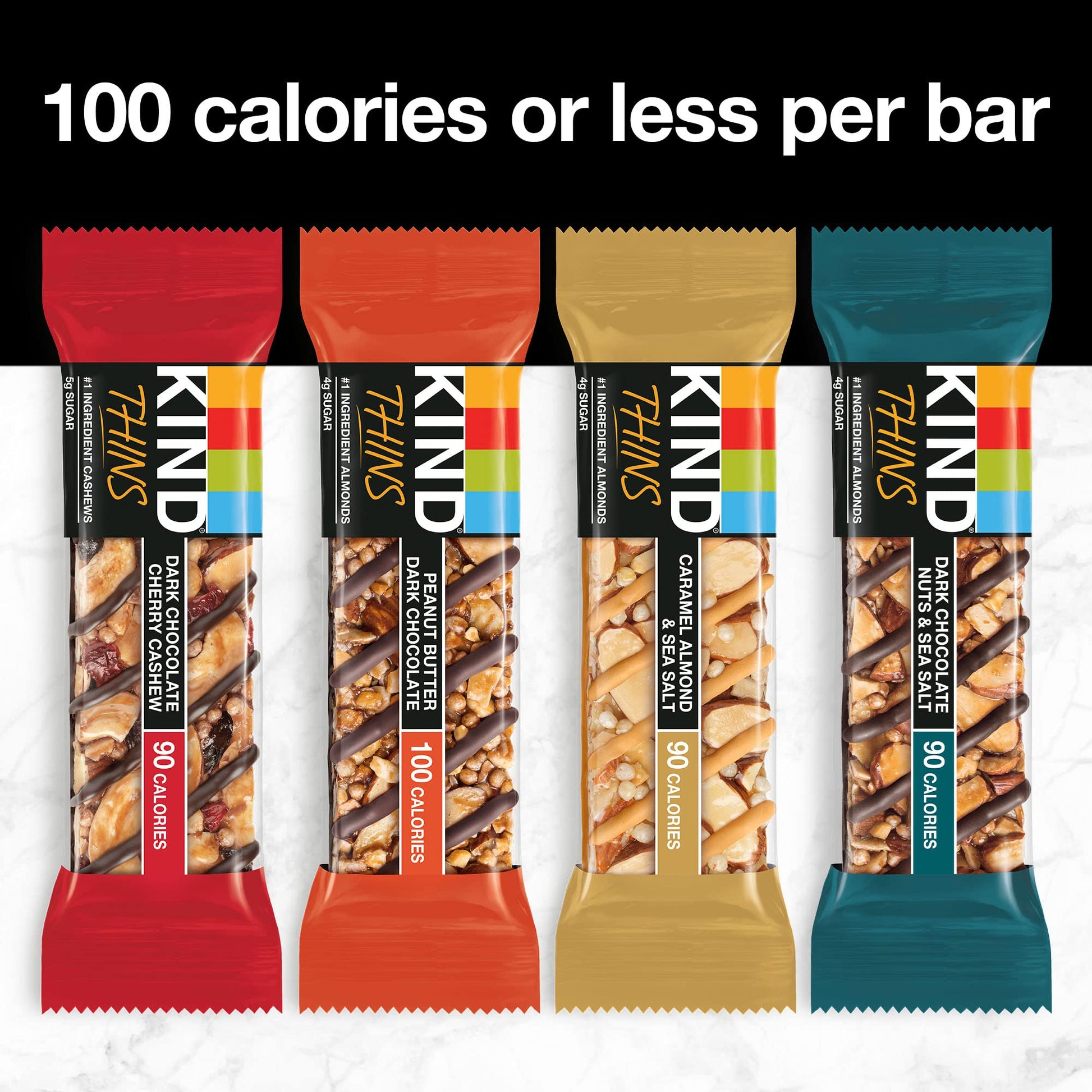 Kind Thins Bars Are A Thinner Take On Your Favorite Kind Bar. With Cashews As The Number 1 Ingredient, These Gluten Free Bars Feature A Thin Layer Of Sliced Cashews With A Chocolatey Coating And Drizzle. These Snack Bars Contain 5 Grams Of Sugar And 90 Calories Per Serving.