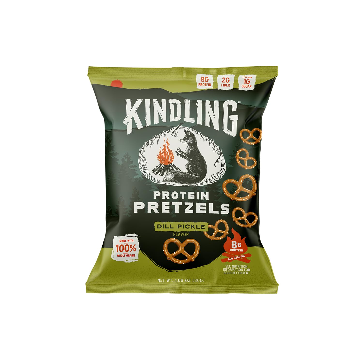 Kindling Protein Pretzels - Dill-Pickle | Protein-Packed Snack Size Bags | Kosher | 8-9g Protein Per Serving | No Artificial Fla