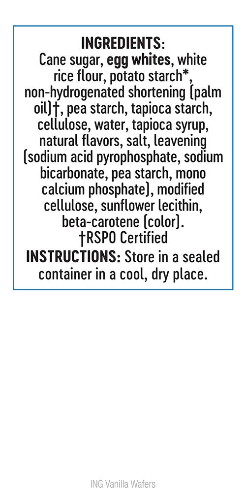 GLUTEN FREE VANILLA WAFERS: Our best-selling cookie, these crispy, light and gluten-free Vanilla Wafers are simply delightful. Perfect alone or as an ingredient in trifles, Tiramisu & ever-popular banana pudding recipes! | LIGHT GOODNESS: Kinnikinnick's Vanilla Wafers are an airy, crispy, melt-in-your-mouth treat that will having you wanting more! Enjoy these in our classic vanilla or tangy lemon flavor! | FREE FROM TOP ALLERGENS: When crafting your next allergen-conscious desert, you can be sure that our wafers are the worry-free sidekick you need! Gluten Free, Dairy Free, Nut Free, Peanut Free, and Soy Free. | FOR EVERY DIET: Kinnikinnick's range of mixes and prepared treats are guaranteed to make anyone with a food intolerance feel normal again and feel like they belong. | KINNIKINNICK’S COMMITMENT: Crafting safe and scrumptious gluten-free baking since 1991- free from dairy, nuts, peanuts and soy, we are a family-owned business loved all around the world by those with dietary restrictions.