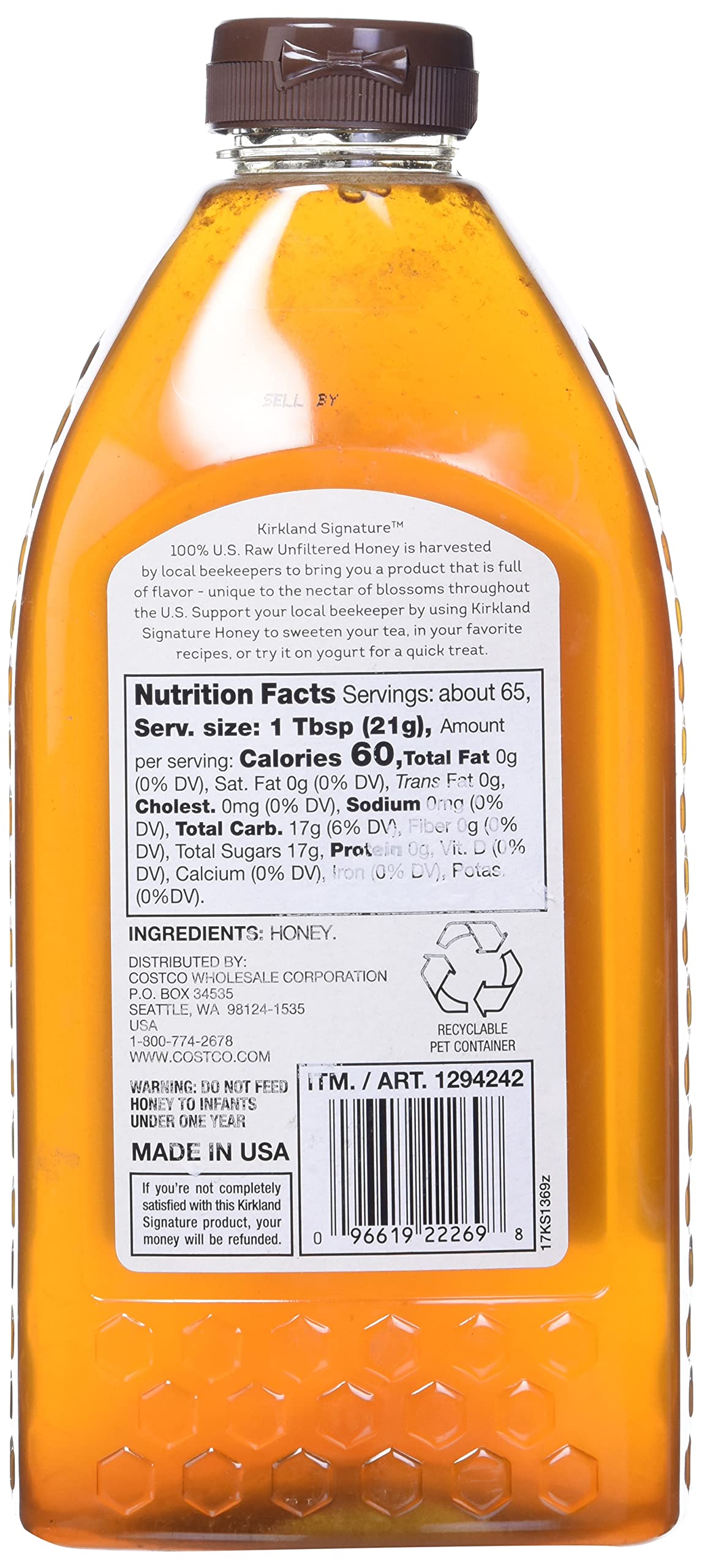Q: Where is Kirkland Signature Raw Honey sourced from?A: Kirkland Signature Raw Unfiltered Honey is sourced from the United States, ensuring high-quality honey that meets rigorous standards.