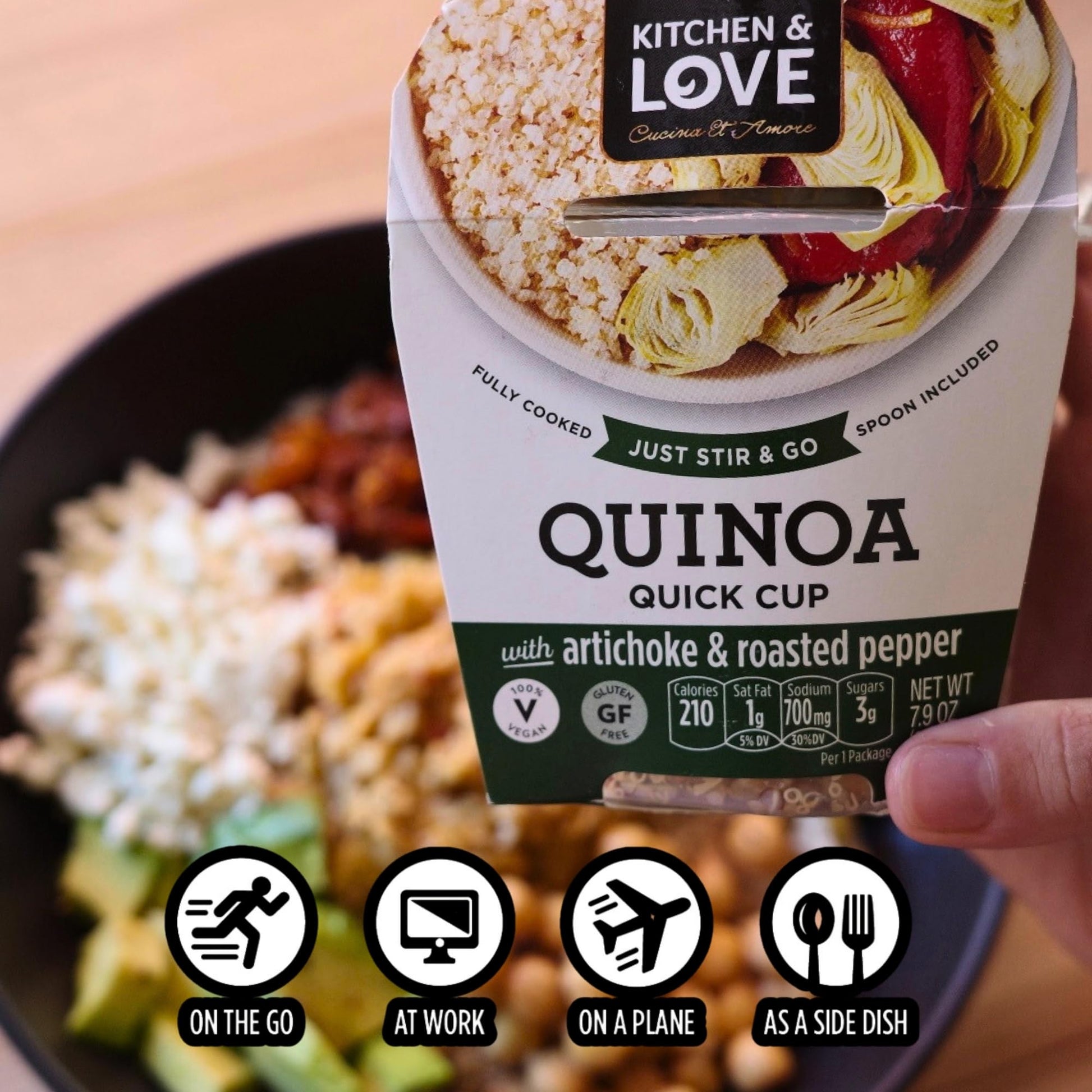 Kitchen & Love's innovative ready-to-eat Quick Cups come with a cup of perfectly cooked quinoa, farro or cauliflower with a tasty vegetable sauce to mix in. A handy-dandy spork is included for extra convenience. Simply open, stir & go! Enjoy it hot or cold in its BPA-free cup. They're incredibly versatile - use them as a side dish and personalize your bowls, salads, and more by adding your favorite veggies and protein.