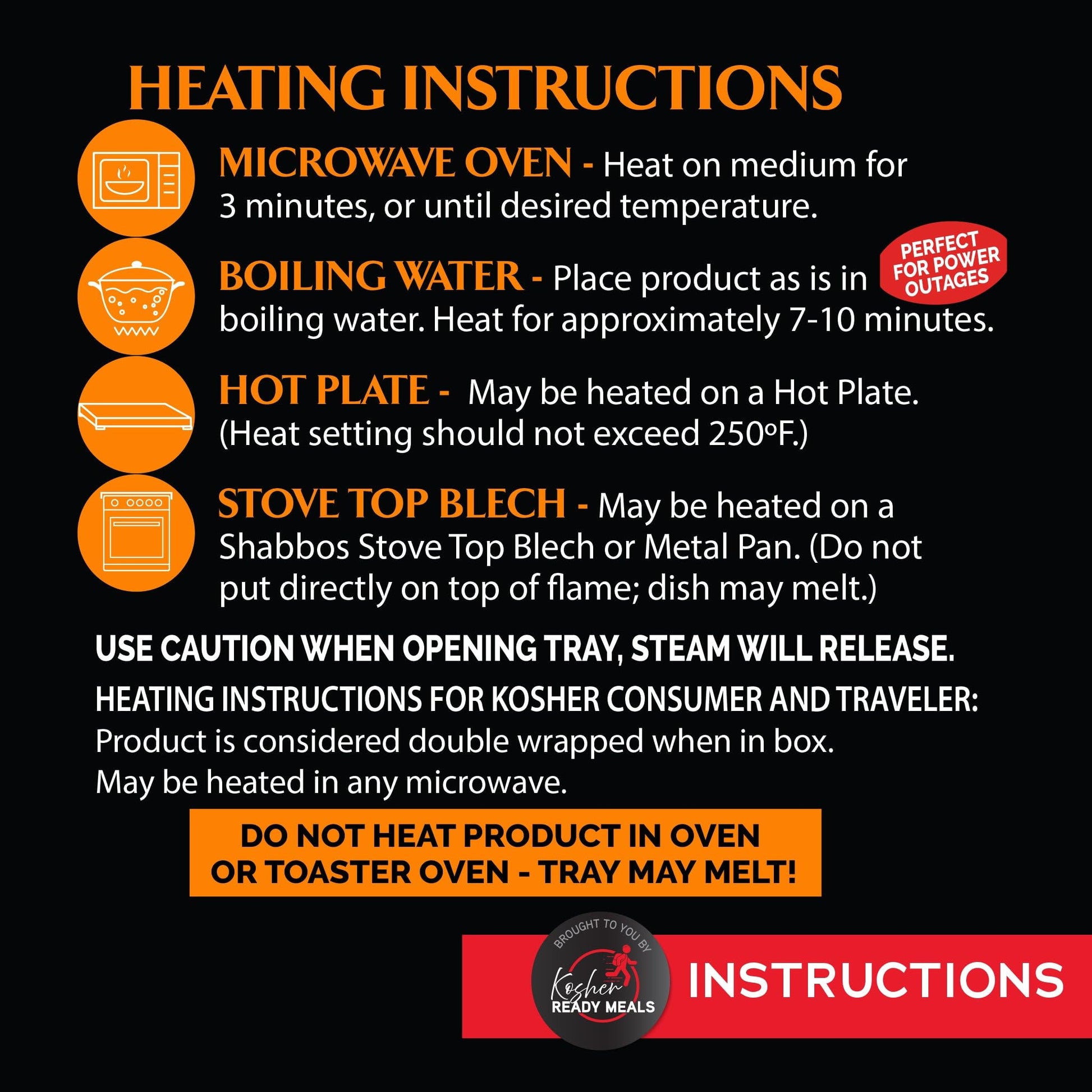 - Q: What are KJ Poultry Kosher Ready Meals and how are they prepared? A: KJ Poultry Kosher Ready Meals are fully cooked, shelf-stable entrees that require minimal preparation. They can be heated in a microwave for just 3 minutes or boiled in water for 7 to 10 minutes, allowing you to enjoy a delicious meal quickly and easily.