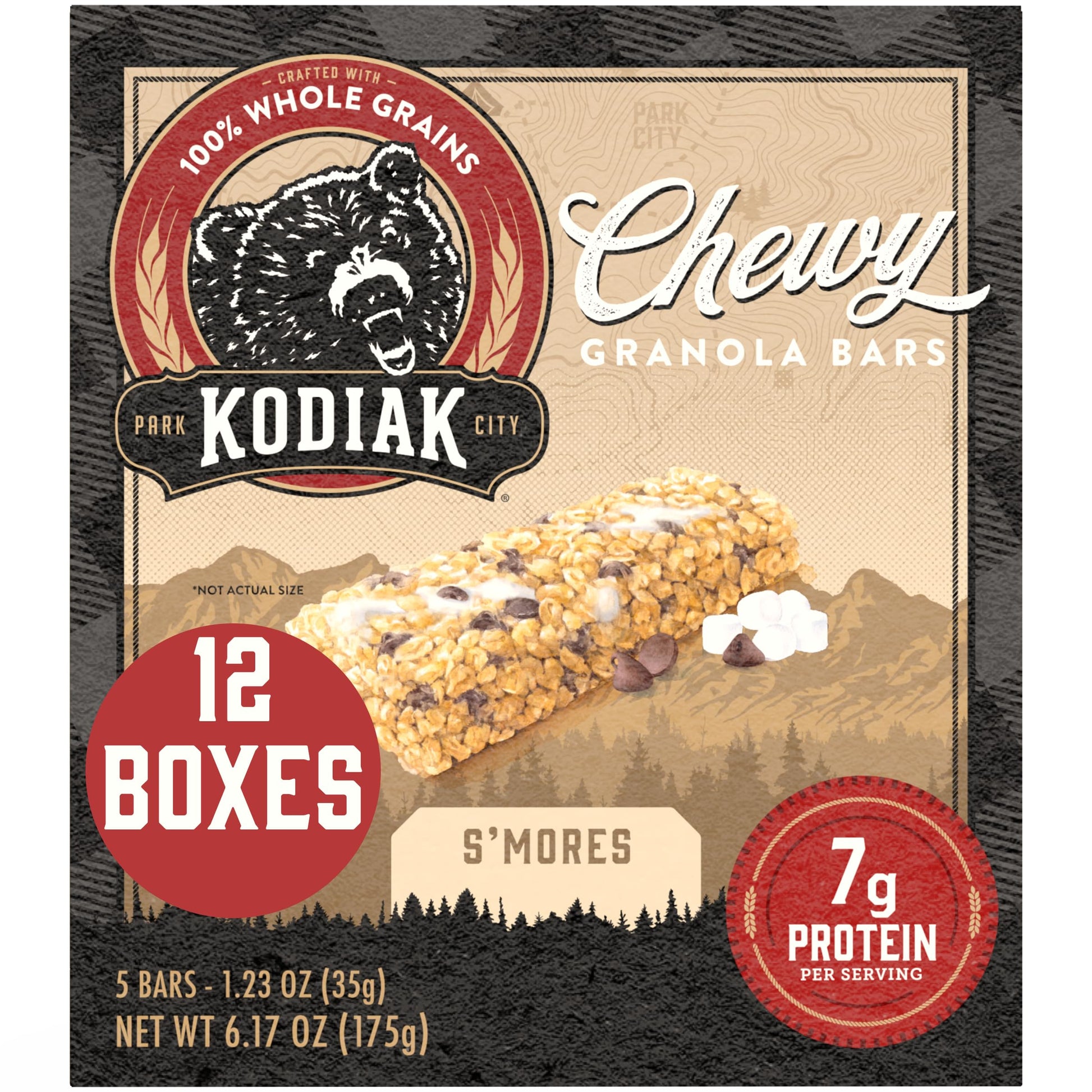Q: How many bars are included in each box of Kodiak S'mores Chewy Bars?A: Each pack contains 12 boxes, with each box holding 5 granola bars. This totals 60 bars, perfect for sharing or stocking up for on-the-go snacking.