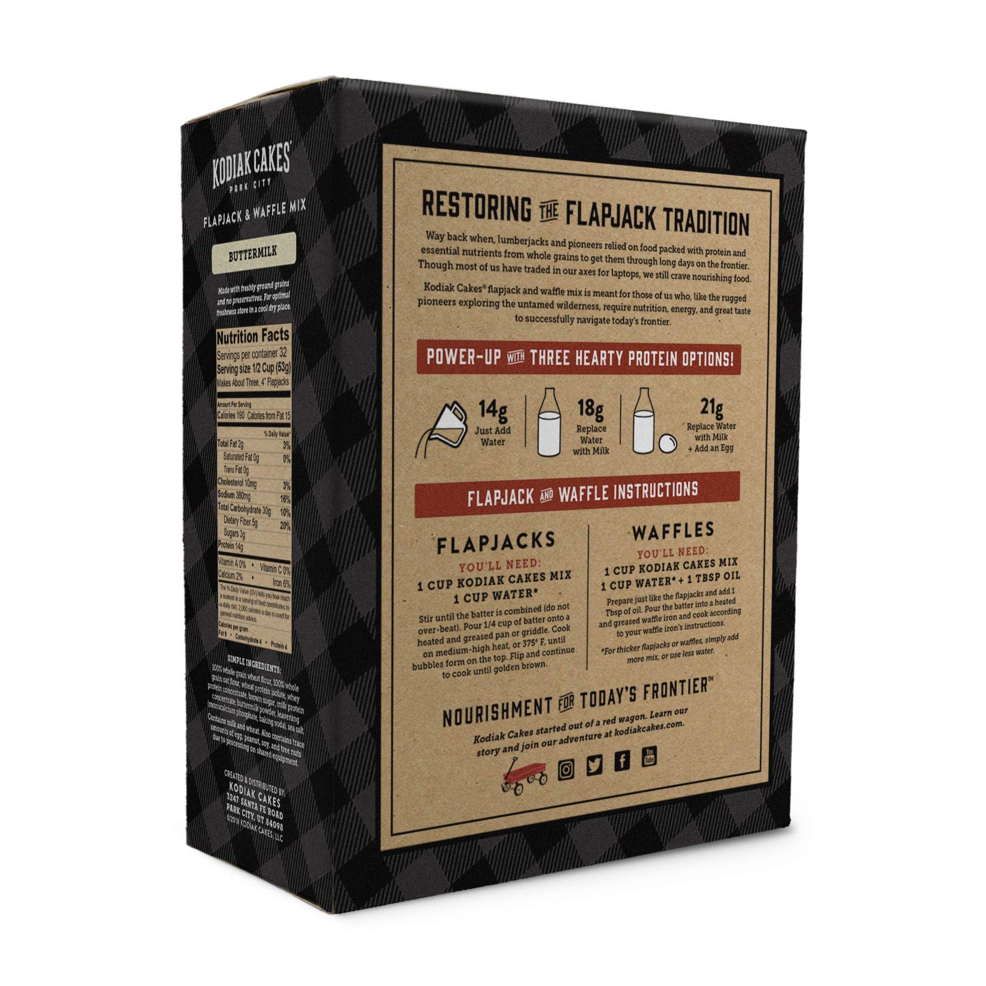 Q: What is Kodiak Power Cakes Buttermilk Flapjack & Waffle Mix made of?A: Kodiak Power Cakes Buttermilk Flapjack & Waffle Mix is made with high-quality ingredients, including whole grains and protein, designed to provide a nutritious and delicious base for pancakes and waffles.