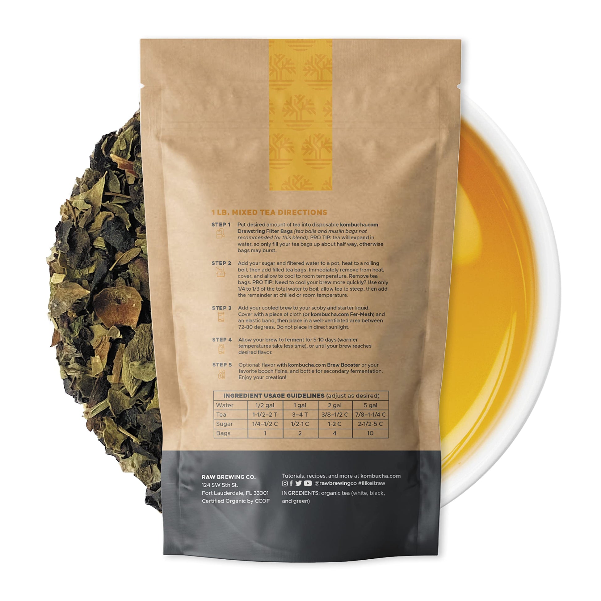 Q: How much kombucha can I make with one pound of this tea blend?A: One pound of our Kombucha Brewing Blends can make up to 50 gallons of kombucha, offering an economical choice for both home brewers and commercial users.