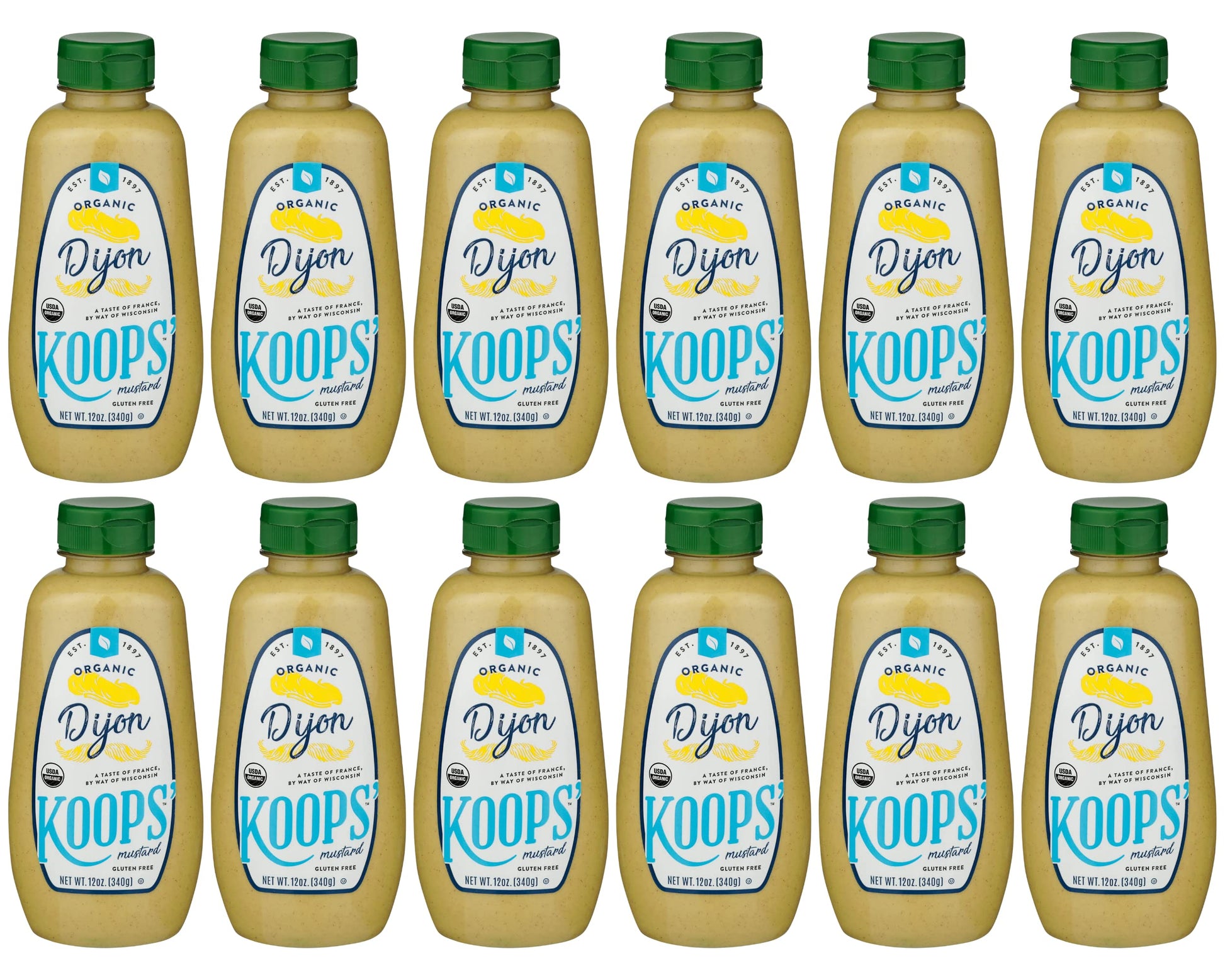 Details:Koops organic dijon mustard is made from the highest quality certified usda organic ingredients including organic mustard seeds, vinegar and turmeric One 12 oz Bottle of koops is certified gluten-free and kosher, for a healthy way to spice up any bland sandwich Koops has been making the same great tasting mustard in pleasant prairie wisconsin since 1897, for quality you can trustcountry of origin : united statesis dairy free : yesis gluten free : yesis gmo free : yesis kosher : yesis yeast free : yesorganic : 95%+ organicsize : 12 ozpack of : 12selling unit : caseingredients : waterorganic mustard seedsorganic vinegarsaltorganic turmericorganic spiceskeywords : condimentflavorfulgluten-freehealthynaturalspicy