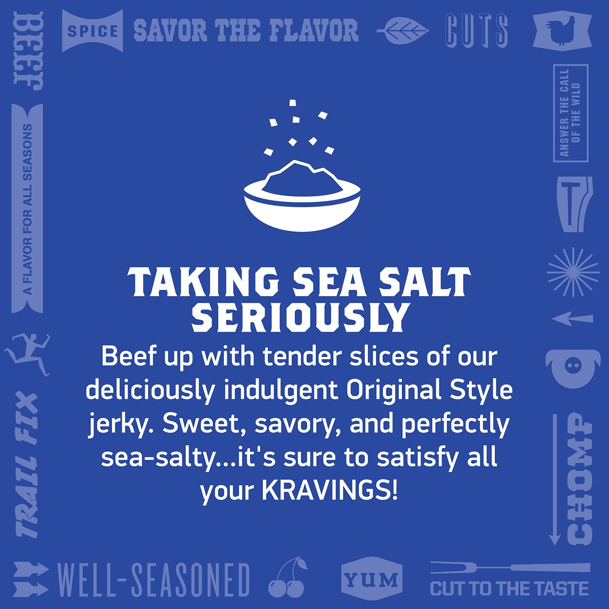 Key Features:- SEA SALT ORIGINAL BEEF JERKY: Made with tender slices of Original Style jerky that are sweet, savory, and perfectly sea-salty.
