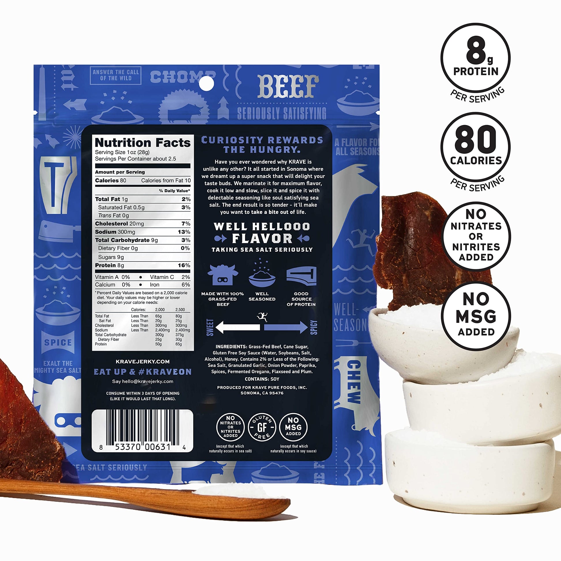 - Q: What flavors are available in KRAVE Beef Jerky? A: KRAVE Beef Jerky offers a variety of flavors, including the Original Sea Salt flavor. Each flavor is crafted to provide a unique taste experience.