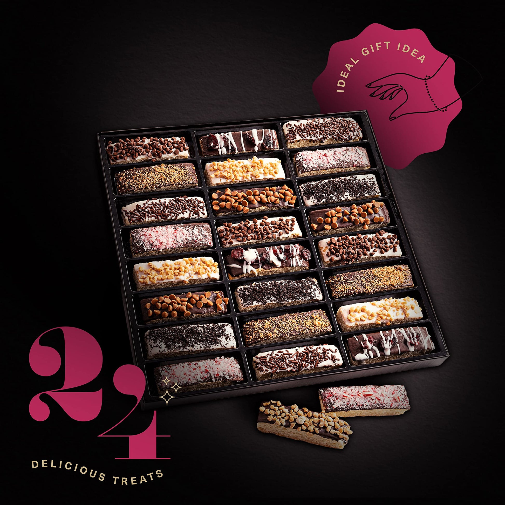 Kremery presents our most delicious and elegant gift box. A delicate selection of our most creamy dairy-free chocolate-covered biscotti cookies packed in an elegant ready-to-gift high-quality box to impress even the most demanding gift recipients. Were you looking for the perfect gift? Look no further. Our gourmet Chocolate Covered Biscotti Cookies gift box is the perfect choice for a holiday gift, a hostess gift, a corporate gift You name it! Why is it the perfect gift, you ask? Three words: Elegant. Delicious. Affordable. More details? Ok, let's give you some details. The Kremery Chocolate Covered Biscotti Cookies dessert box contains 9 types of our signature chocolate dipped cookies: - Colorful Sprinkles - Chocolate Sprinkles - Peppermint Candy - Coconut - Caramel Chips - Chocolate Chips - Dried Cranberries - Almonds - Cookie Crumbs Yes, we know what really counts is what's on the inside. But we do care about the outside as well, right? Well, have you heard about our elegant ready-to-gift arrangement? - High-end ready-to-gift box. - Elegant uniquely black, maroon & gold box. Kremery is a company based in the USA and our cookies are also proudly made in the USA to ensure they're made with the best quality ingredients in the market. Our commitment to our consumers is to deliver the best and most delicious and creamy chocolate dipped cookies in the market. Are you ready to join the Kremery family?