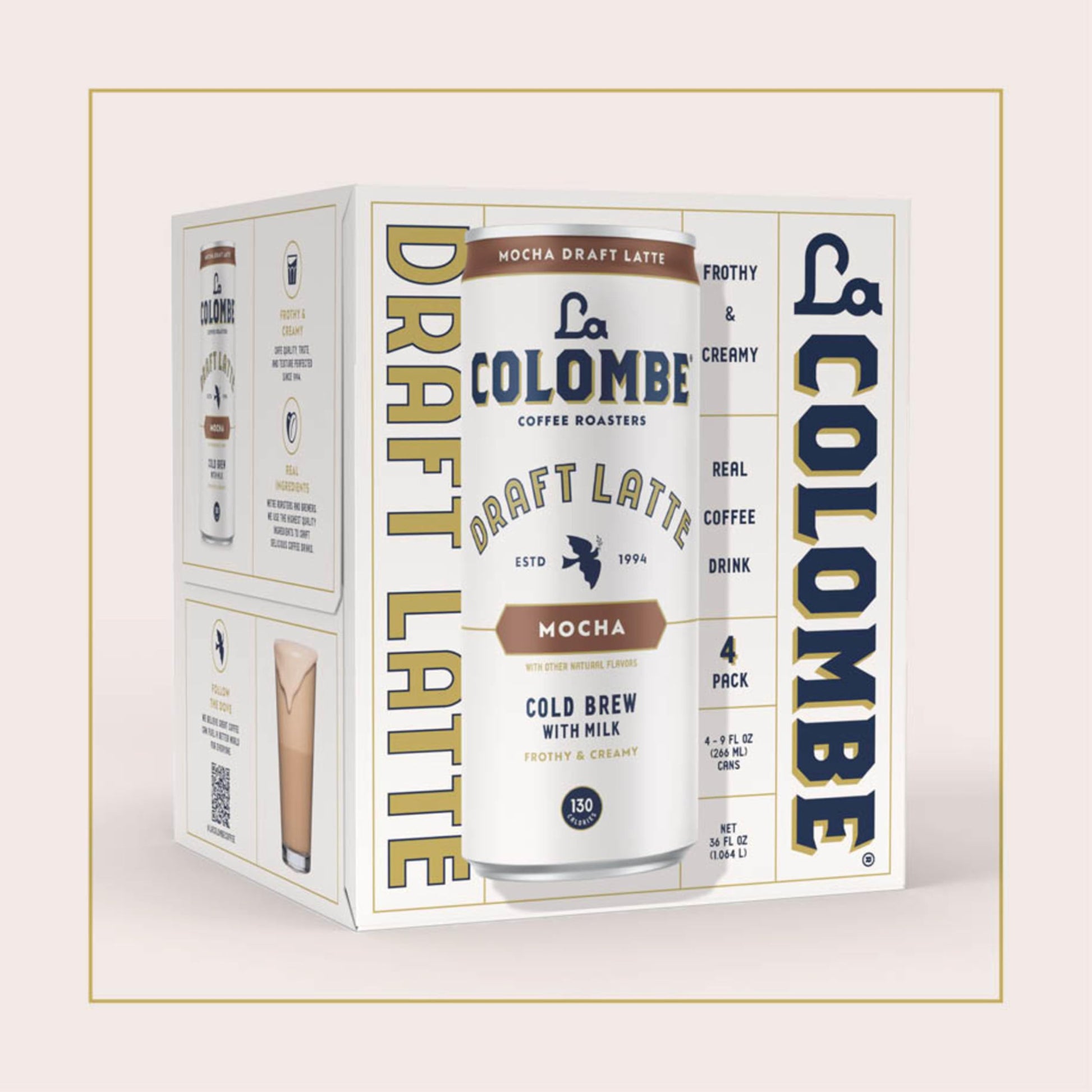 Q: What is the serving size of La Colombe Mocha Draft Latte?A: Each can of La Colombe Mocha Draft Latte contains 9 Fl Oz, and the product is available in a convenient pack of 4, making it easy to enjoy multiple servings.