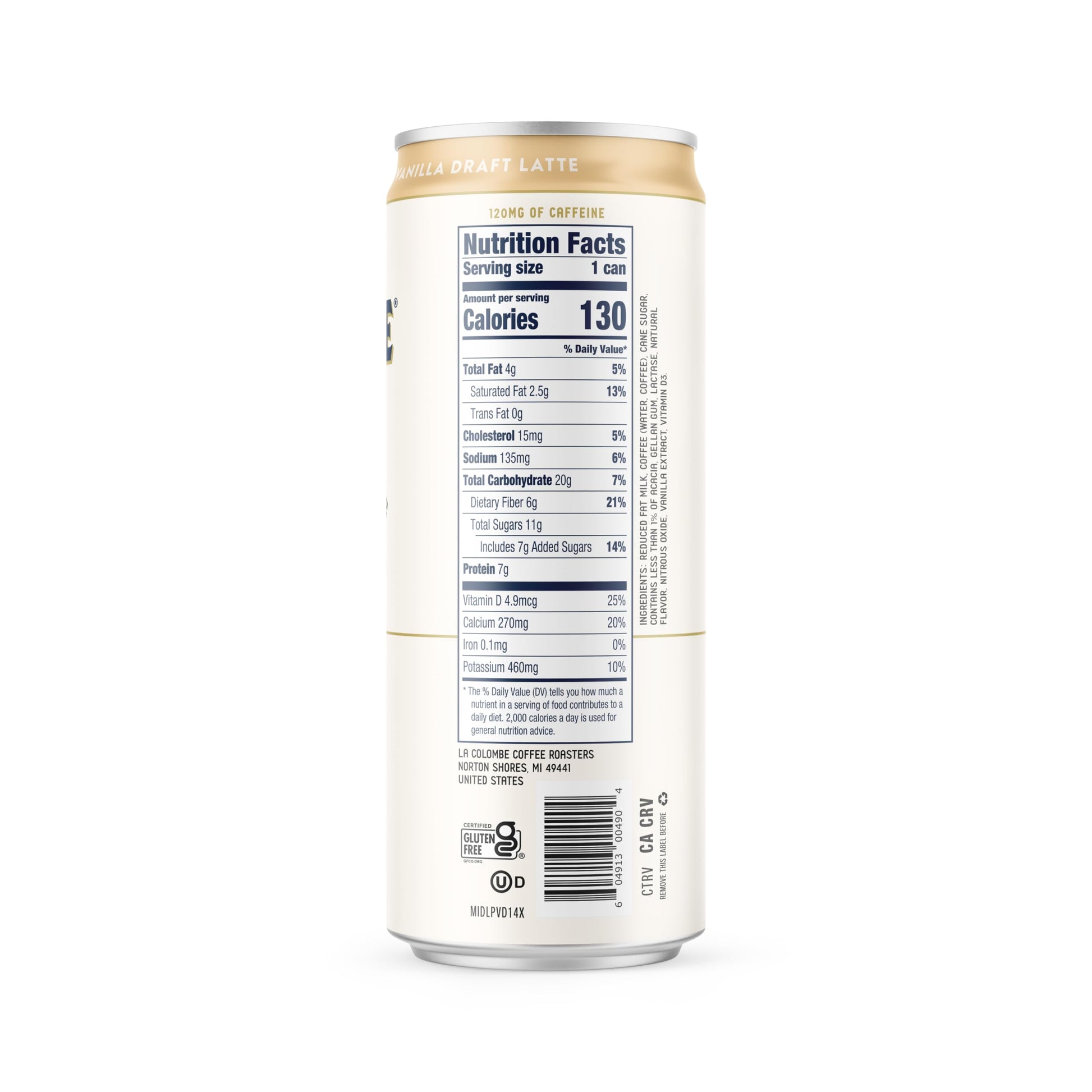 Q: What are the main ingredients in La Colombe Vanilla Draft Latte?A: The main ingredients include cold brew coffee, milk, vanilla flavoring, and sugar. It is crafted to deliver a smooth and creamy coffee experience.