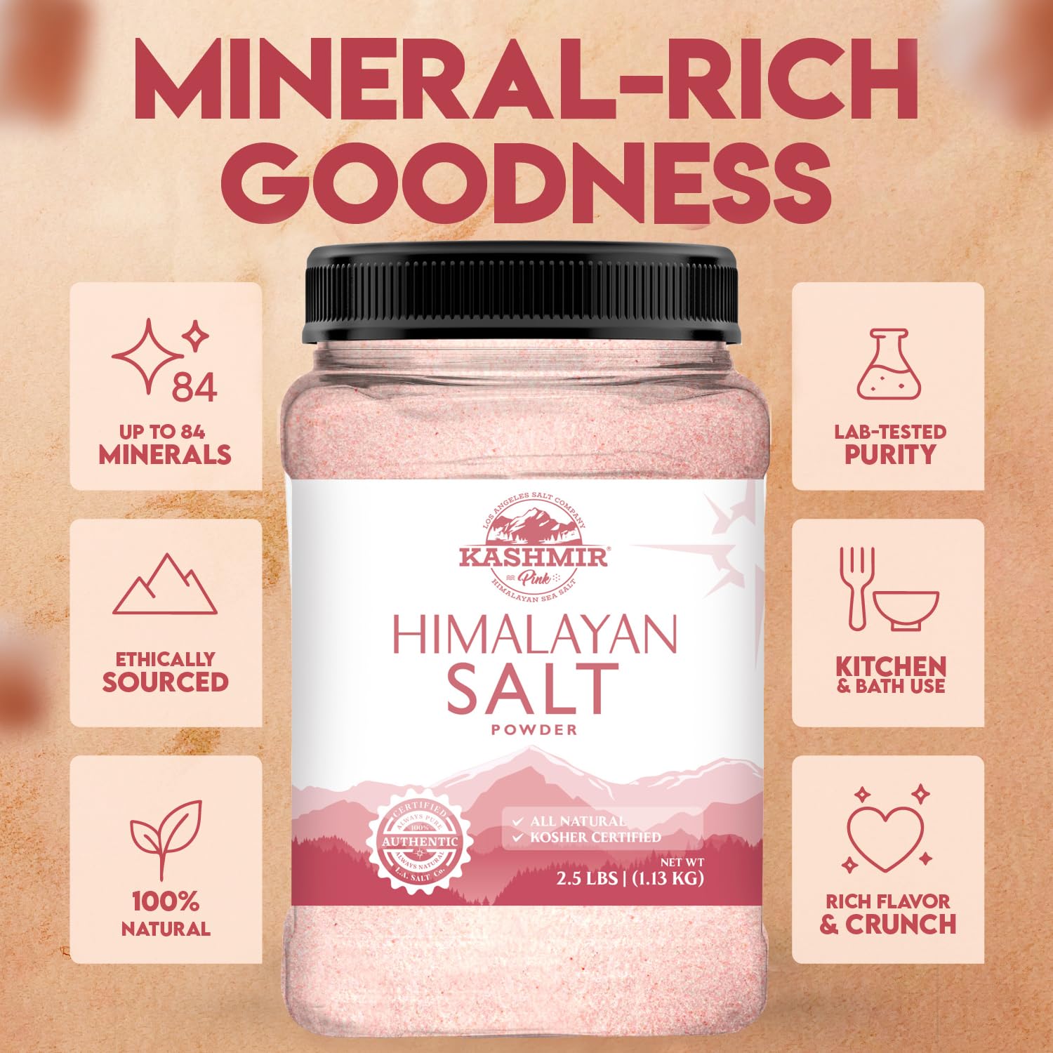 - Q: What makes LA SALT CO Himalayan Pink Salt different from regular table salt? A: Unlike regular table salt, which is often heavily processed, LA SALT CO Kashmir Pink Himalayan Salt is natural and retains its essential minerals. This gives it unique flavors and health benefits not found in regular salt.