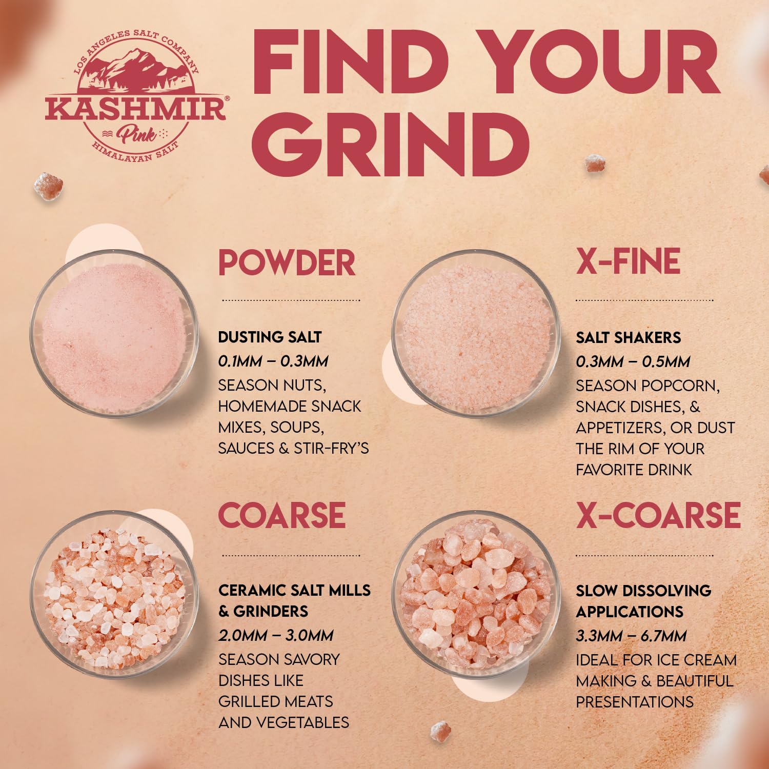 - Q: Can I use this salt in a salt grinder? A: LA SALT CO Kashmir Pink Himalayan Salt is a powdered form, which may not be suitable for traditional salt grinders. It is best used directly for seasoning or in recipes.