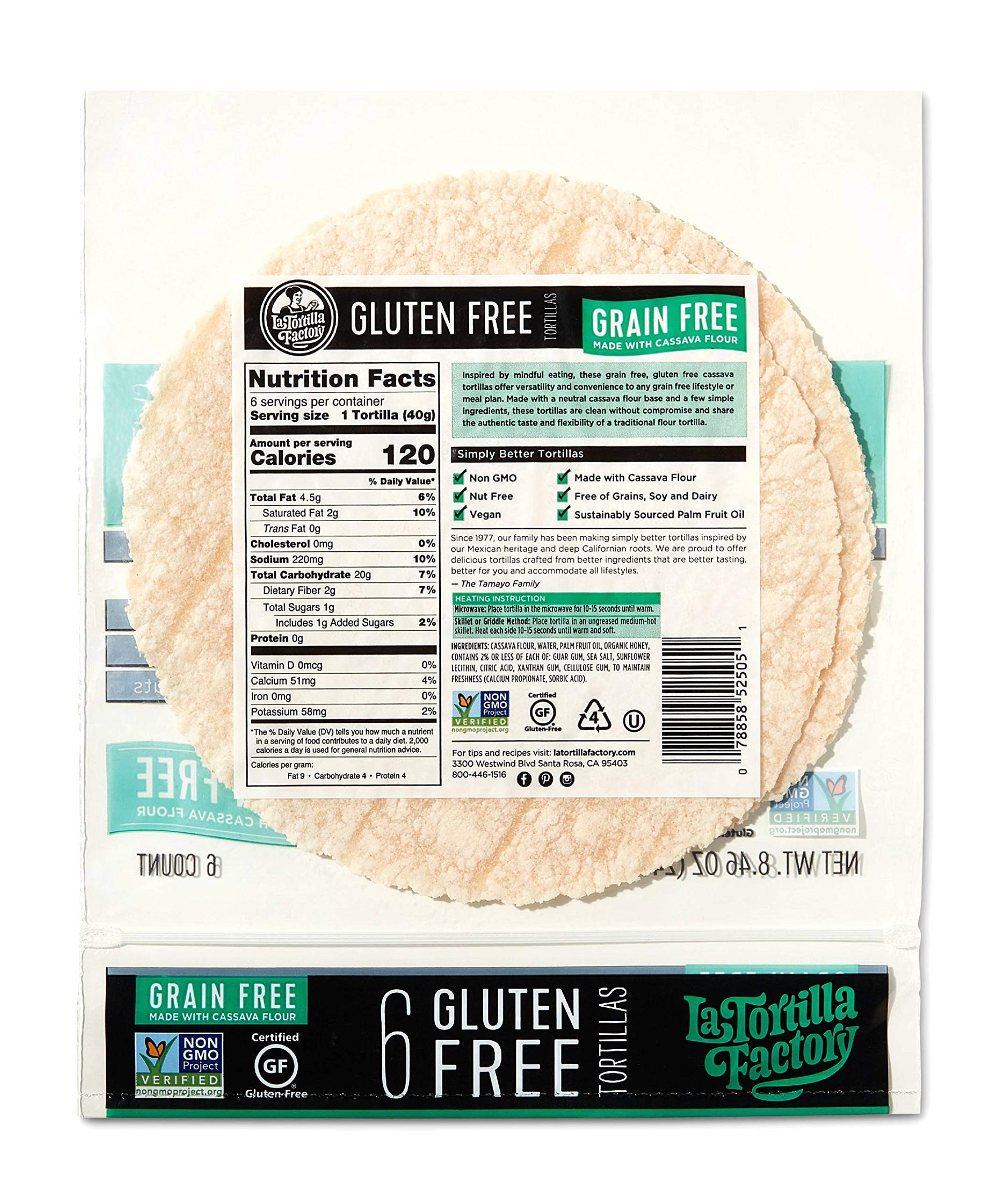Q: Are La Tortilla Factory Gluten-Free Cassava Tortillas suitable for a paleo diet?A: Yes, La Tortilla Factory Gluten-Free Cassava Tortillas are paleo-friendly as they are made from cassava flour and do not contain any wheat, soy, or dairy.