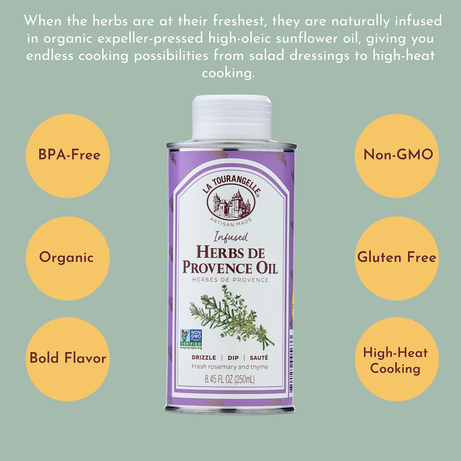 La Tourangelle Herbs De Provence Infused Sunflower Oil, High-Oleic Oil For Cooking, Vinaigrettes & Dipping Sauces, 8.45 Fl Oz