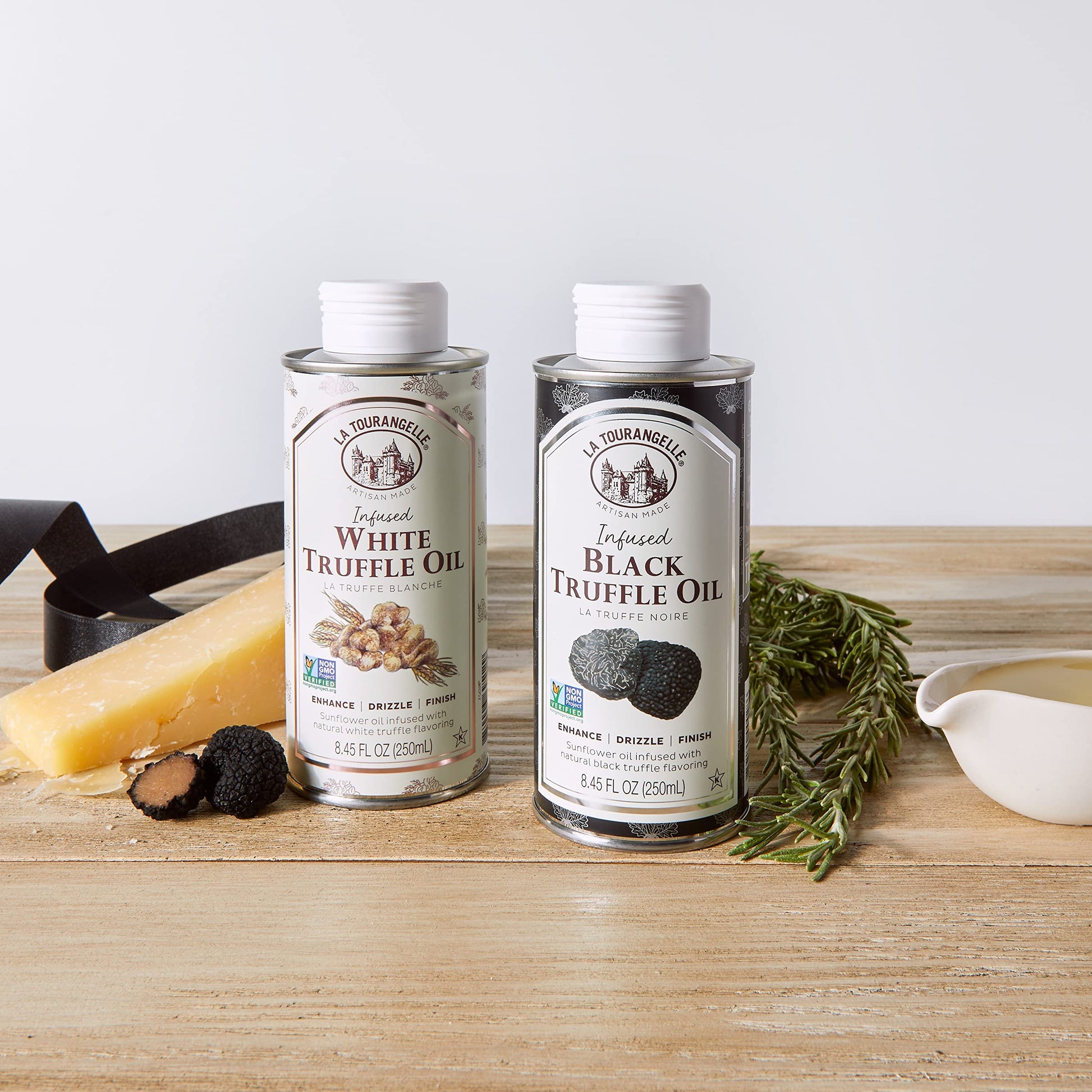 La Tourangelle White Truffle Oil & Black Truffle Oil Set, Complex Gourmet Earthy Flavor For Drizzling Over Pasta, Popcorn, Vegetables, Potatoes, Soup And More, Gift Box, 8.45 Fl Oz Each (Set Of 2)