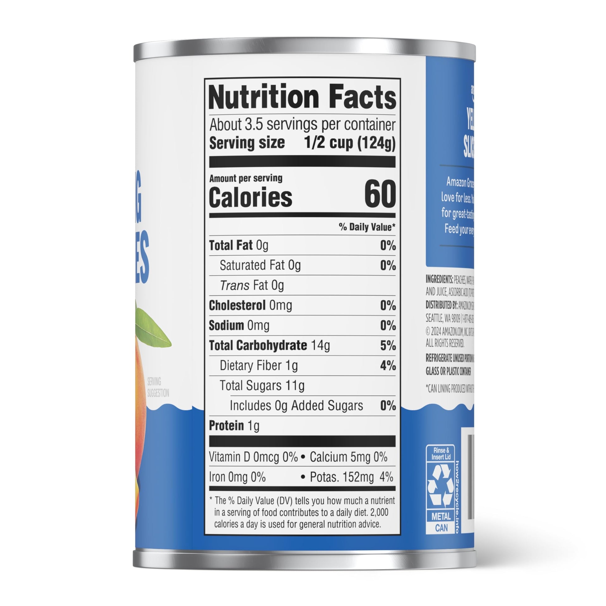 - Q: Is the packaging of Amazon Grocery Yellow Cling Sliced Peaches recyclable? A: The recyclability of the packaging may vary by location. Check your local recycling guidelines for more information on whether the can is recyclable.