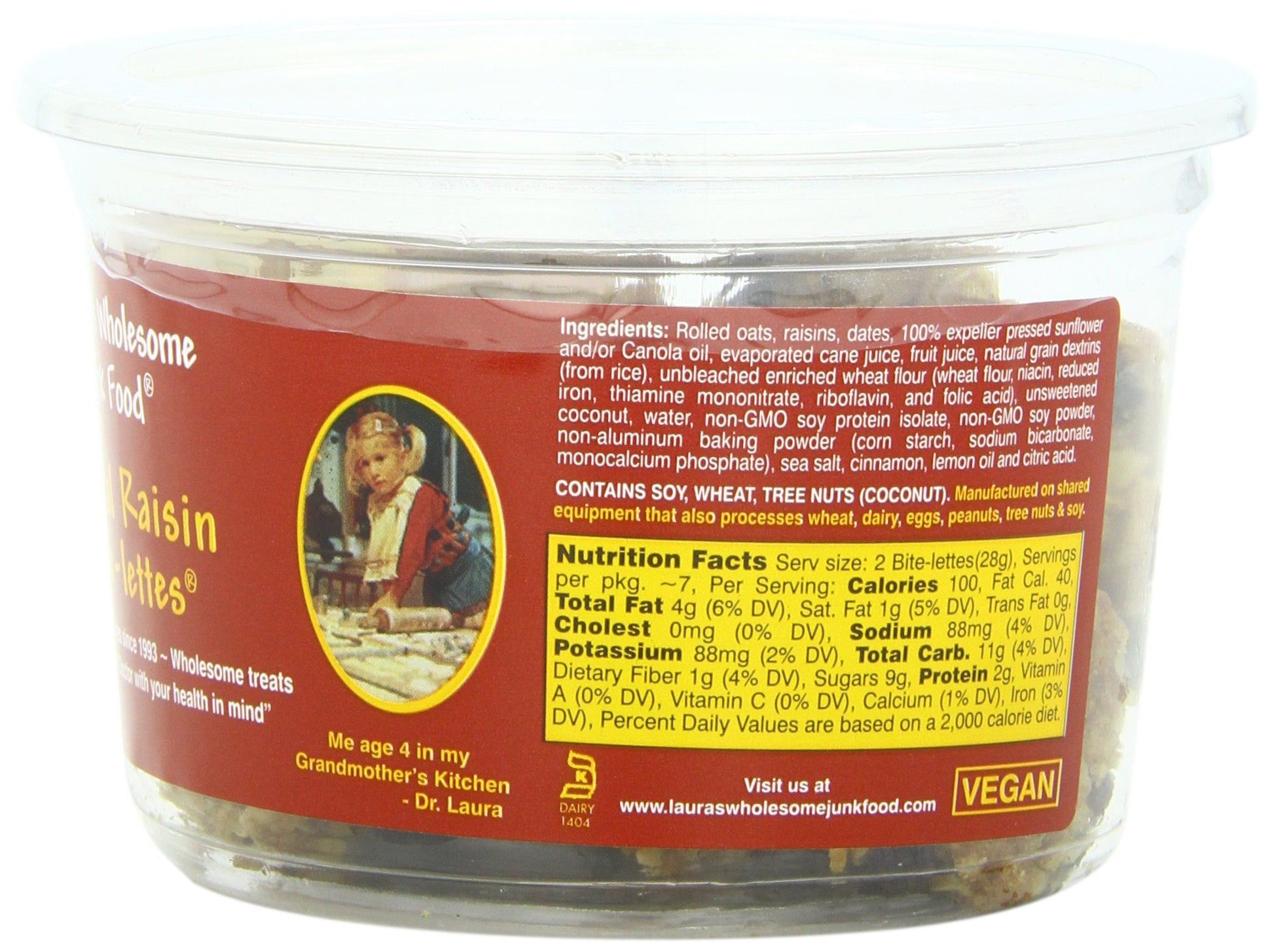 Q: What are the main ingredients in Laura's Wholesome Junk Food Oatmeal Raisin Cookies?A: Laura's Wholesome Junk Food Oatmeal Raisin Cookies are primarily made from whole grains and are sweetened with dates, making them a delicious and healthy treat.