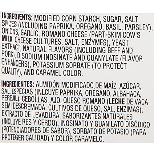 Q: What ingredients are in Lawry's Extra Rich & Thick Spaghetti Sauce Mix?A: Lawry's Extra Rich & Thick Spaghetti Sauce Mix contains a blend of natural herbs and spices, including onion, garlic, and real Romano cheese, along with oregano, basil, thyme, and parsley.