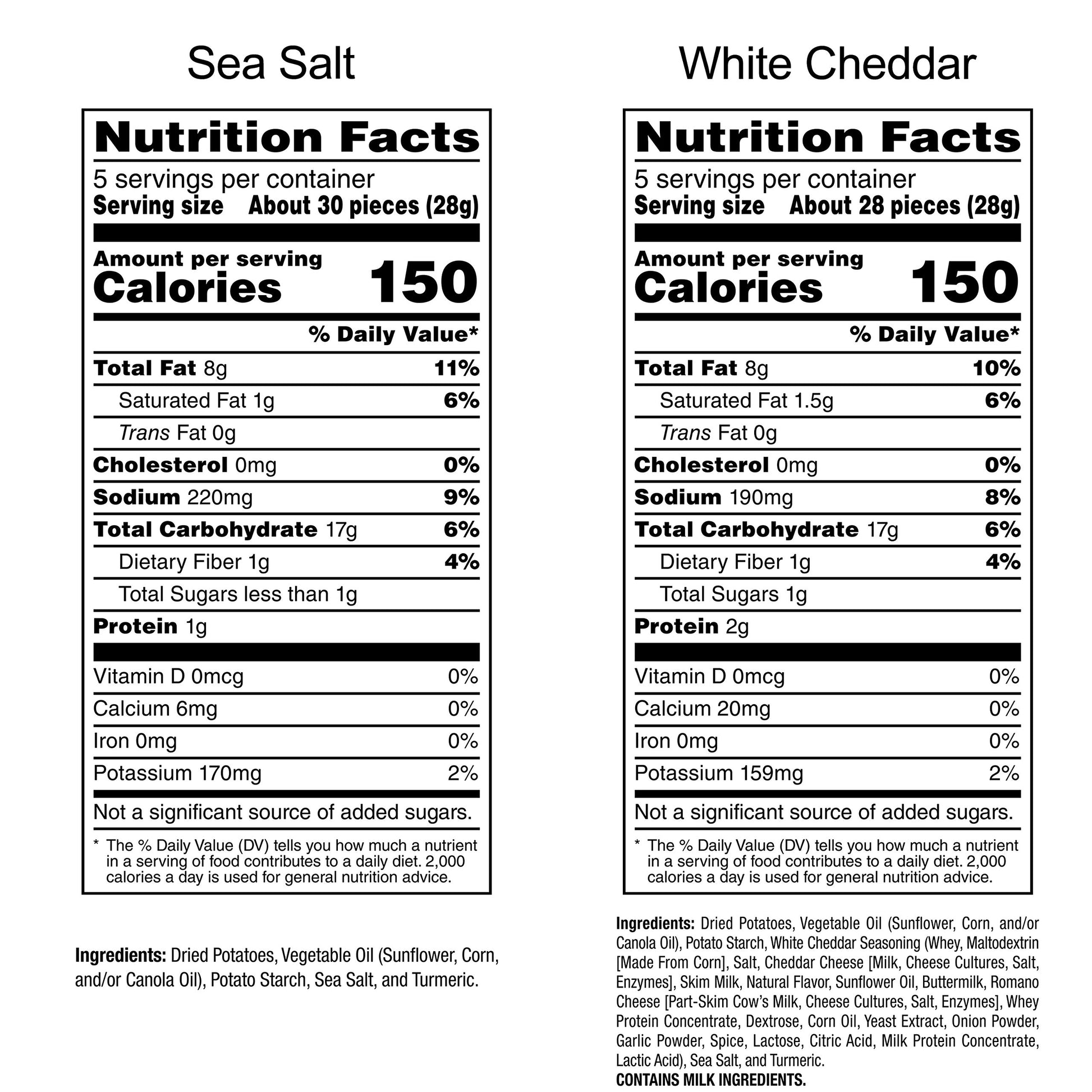 Q: What flavors are included in the Lay's Poppables Variety Pack?A: The Lay's Poppables Variety Pack includes two delicious flavors: Sea Salt and White Cheddar. Each pack contains four 5-ounce bags, with two bags of each flavor.