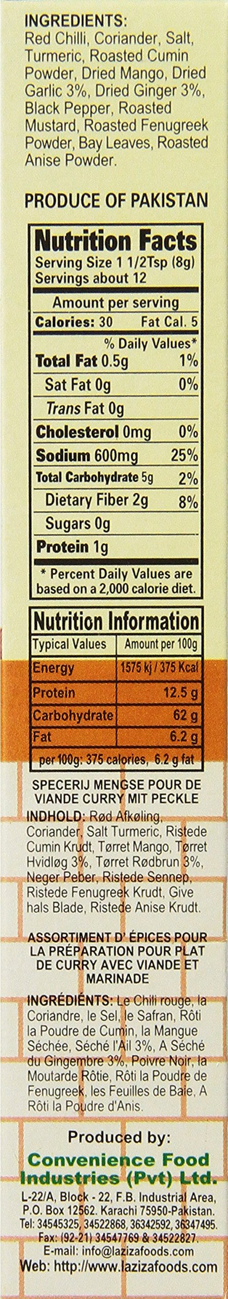 Q: Is Laziza Achar Gosht Masala spicy?A: Yes, Laziza Achar Gosht Masala contains red chili, which adds a spicy kick to your dishes. However, the level of spiciness can vary based on individual preference and the quantity used.