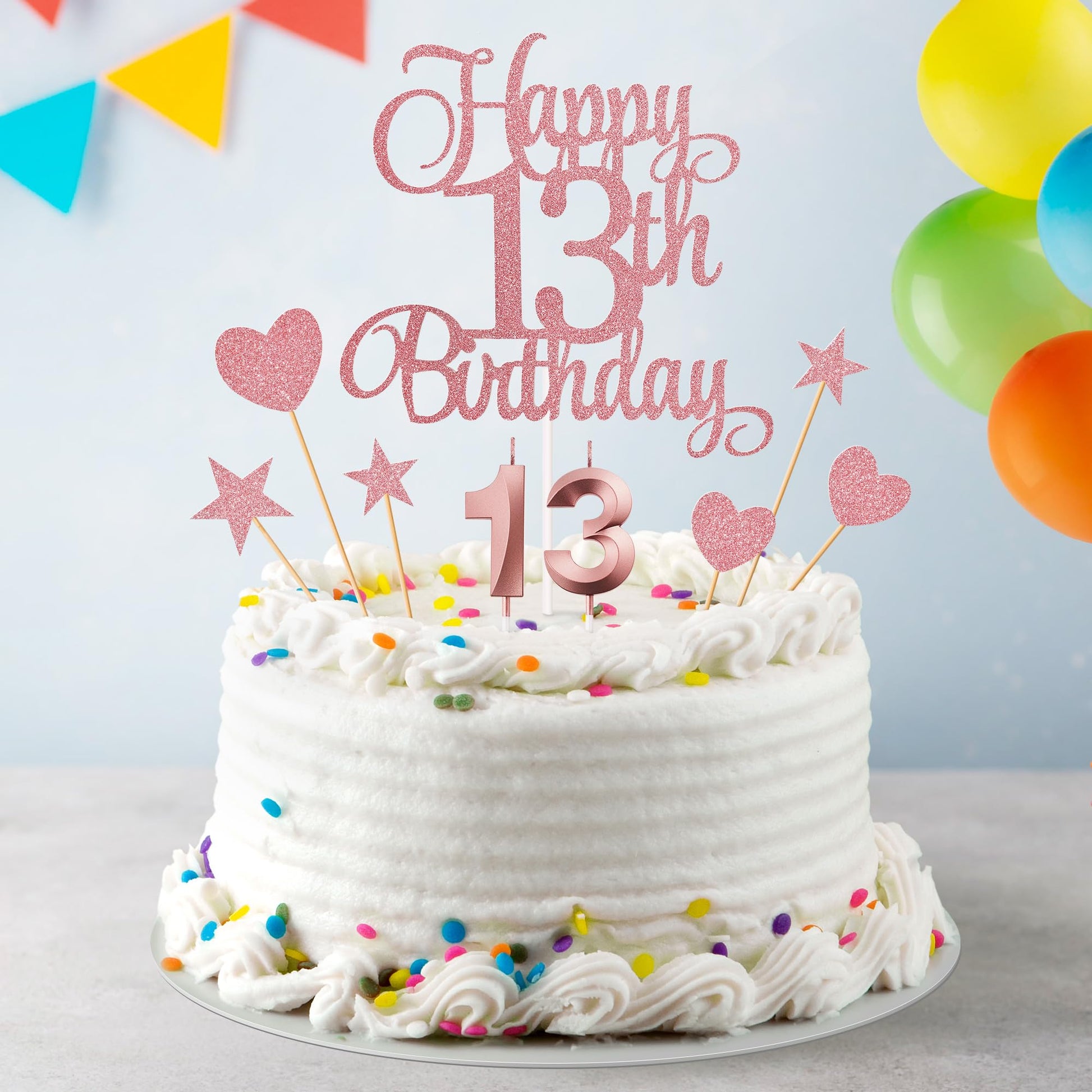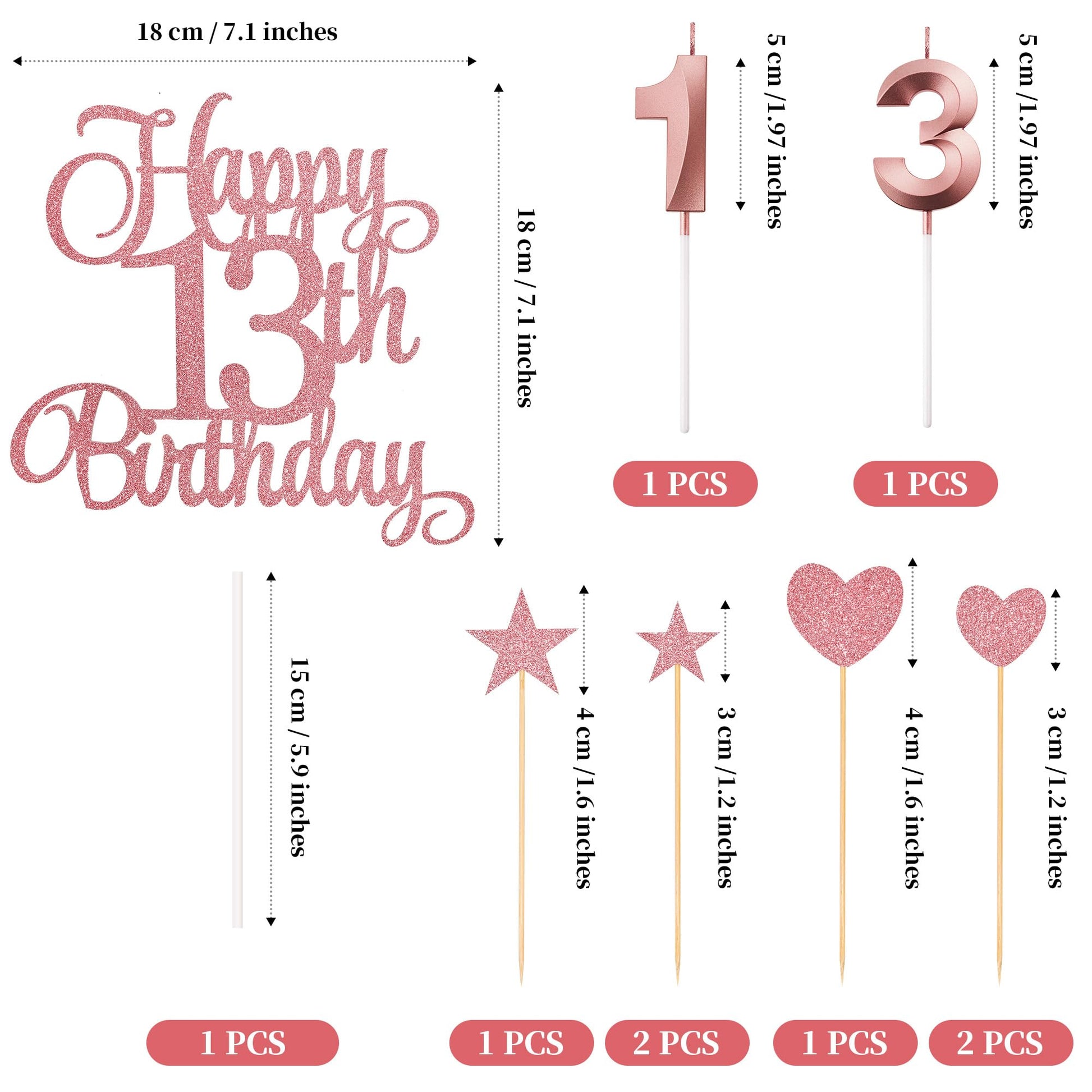 Lecferrarc 13Th Birthday Cake Decorations, 13Th Birthday Candles Cake Numeral Candles And Glitter Happy 13Th Birthday Cake Toppers Set For Birthday Party Supplies Features: Delicate Design And Shiny Appearance: The Number Candles Come In Classic Color And Vivid 3D Design, Look Pretty And Eye-Catching Under Lamplight, The Birthday Cake Toppers Are Printed With Happy 13Th Birthday Letters And Glitter Surface, And The Heart And Stars Topper Are Also Designed With Glitter Surface To Create Romantic Touch To Your Birthday Cake, Making It More Elegant And Eye-Catching, Beautiful Enough To Arouse Your Interest. Quality And Safe Material: These Birthday Toppers Are Made Of Thick Glitter Paperboards, Which Are Durable, Not Easy To Tear Off, Number Candles Are Made Of Quality Wax, Reliable Material Ensures It'S Odorless And Safe For Your Use, Easy To Insert And Provide Bright Light, Can Burn Evenly And Consistently, Give You Nice Using Experience. Specifications: Size: As Pictures Show Color: As Pictures Show Material: Paper, Bamboo, Wax And Plastic Quantity: As Pictures Show Package Includes: 1 X Happy 13Th Birthday Cake Topper (Adhesive Dot And Paper Stick Are Included) 3 X Star Toppers 3 X Heart Toppers 2 X Numeral Candles Note: Manual Measurement, Please Allow Slight Errors On Size. The Colors May Exist Slight Difference Due To Different Screens.