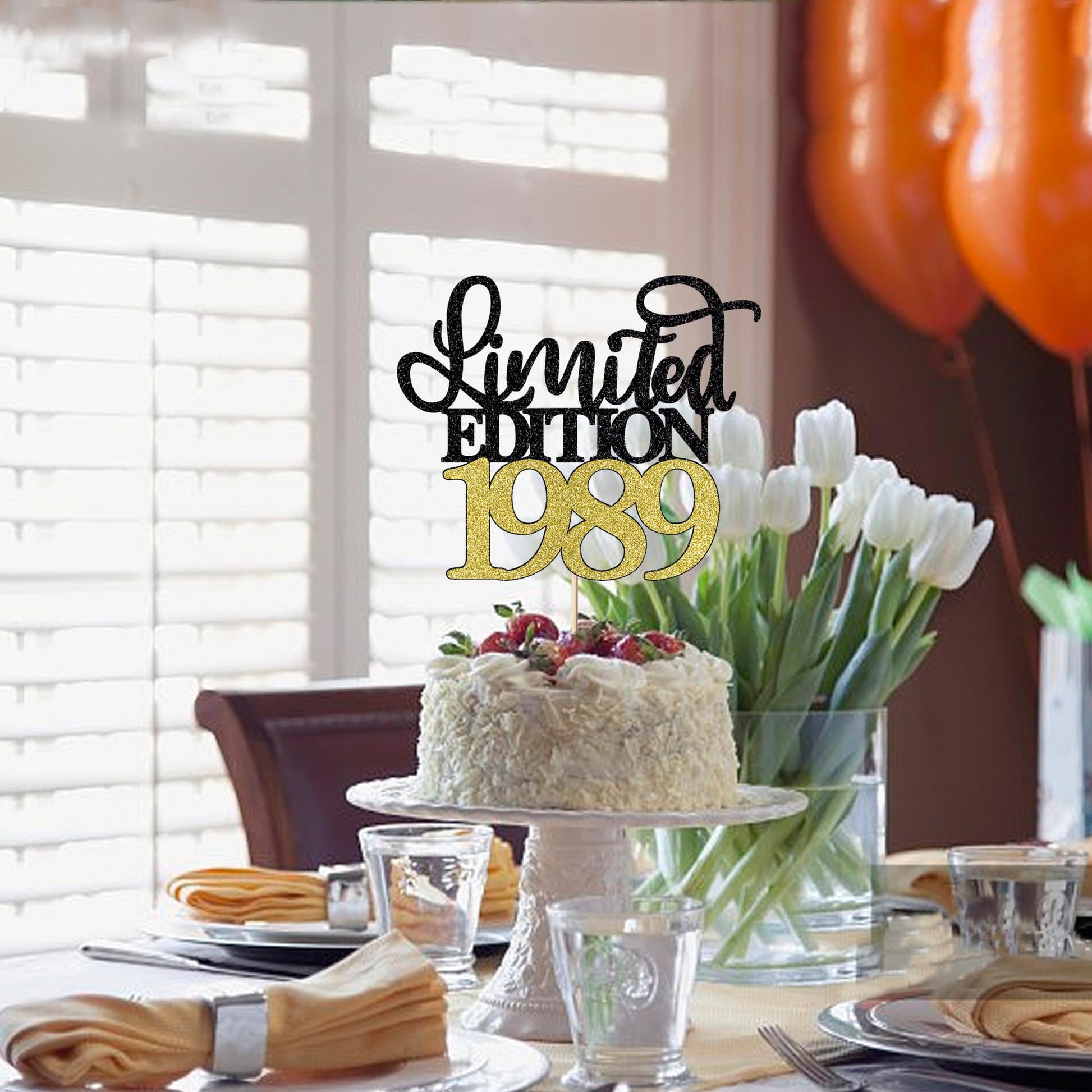 Q: What materials are used in the Leetaivie Limited Edition 1989 Cake Topper?A: The Leetaivie Limited Edition 1989 Cake Topper is made of high-quality glitter cardstock and toothpicks. It is non-toxic, safe to eat, and designed to be durable and sturdy, ensuring it maintains its shape and does not break easily.