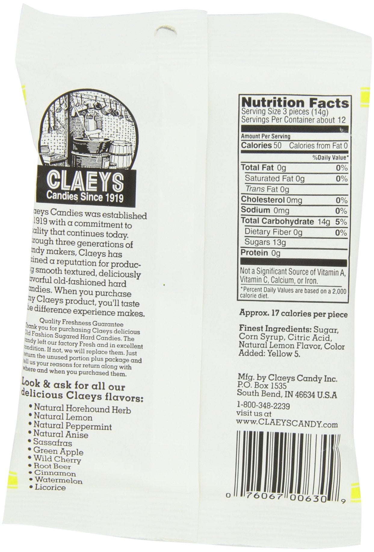Claeys Old Fashioned Lemon Hard Candy 6 Oz.