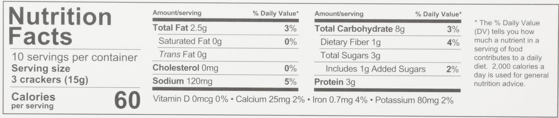 Q: What is the serving size for Lesley Stowe Crisps Fig and Olive?A: The serving size for Lesley Stowe Crisps Fig and Olive is typically 1 ounce, which is about 28 grams. Each 5.3 oz package contains approximately 5 servings.