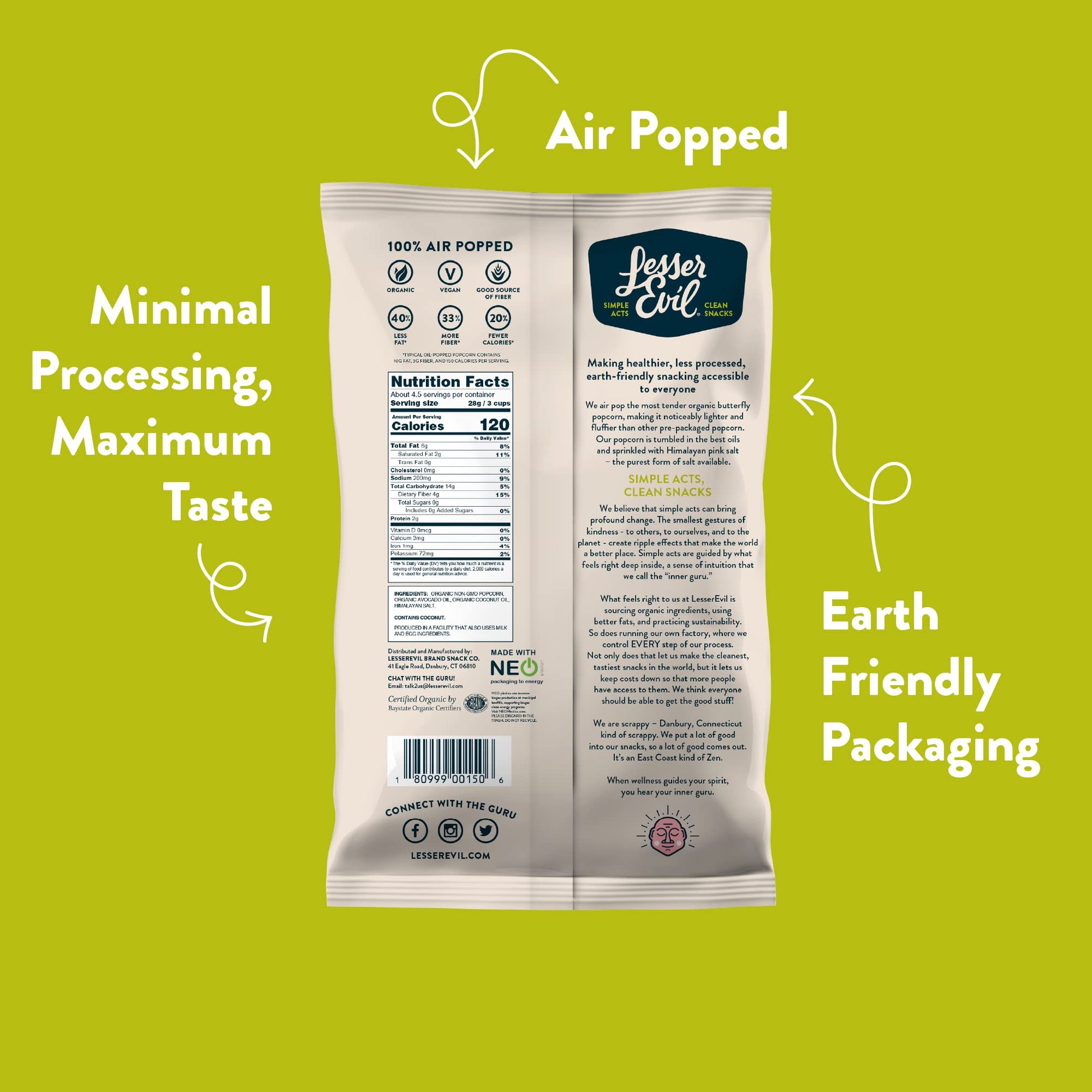 Lesser Evils Avocado-Licious Popcorn Is Made With Organic Kernels That Are Air-Popped, Sprinkled With Drops Of Avocado Oil And Lightly Dusted With Himalayan Pink Sea Salt From Ancient Deposits. Our Popcorn Is Gluten And Cholesterol Free, Vegan Friendly And Made With The Oil Of 1 And 14 Avocados. There Are 120 Calories Per Serving And It All Comes In A 5 Oz. Bag.