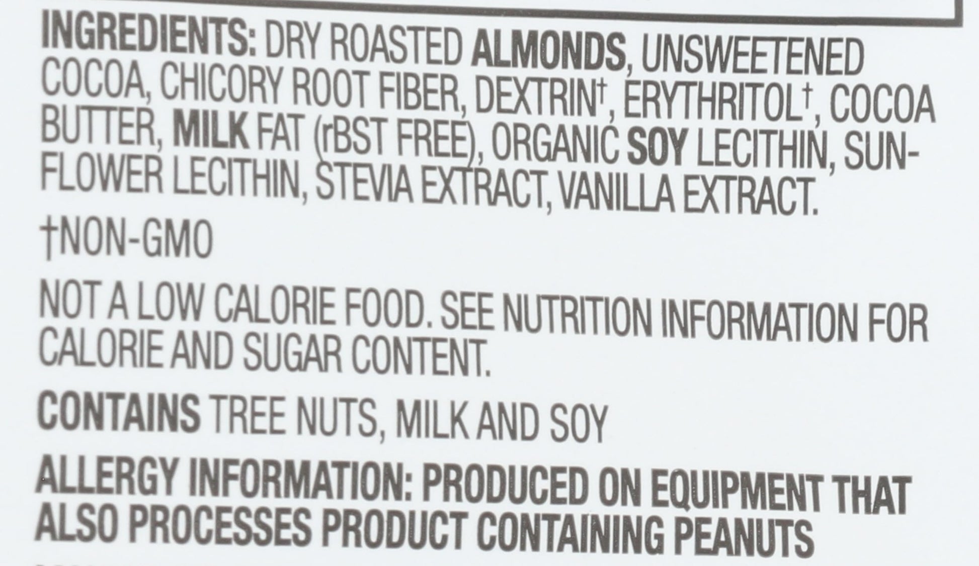 Q: What are the main ingredients in Lily's Sweets Dark Chocolate Covered Almonds?A: Lily's Sweets Dark Chocolate Covered Almonds are made with high-quality ingredients, including 55% cocoa dark chocolate, almonds, and stevia for sweetness. They are also fair trade certified and contain non-GMO ingredients.