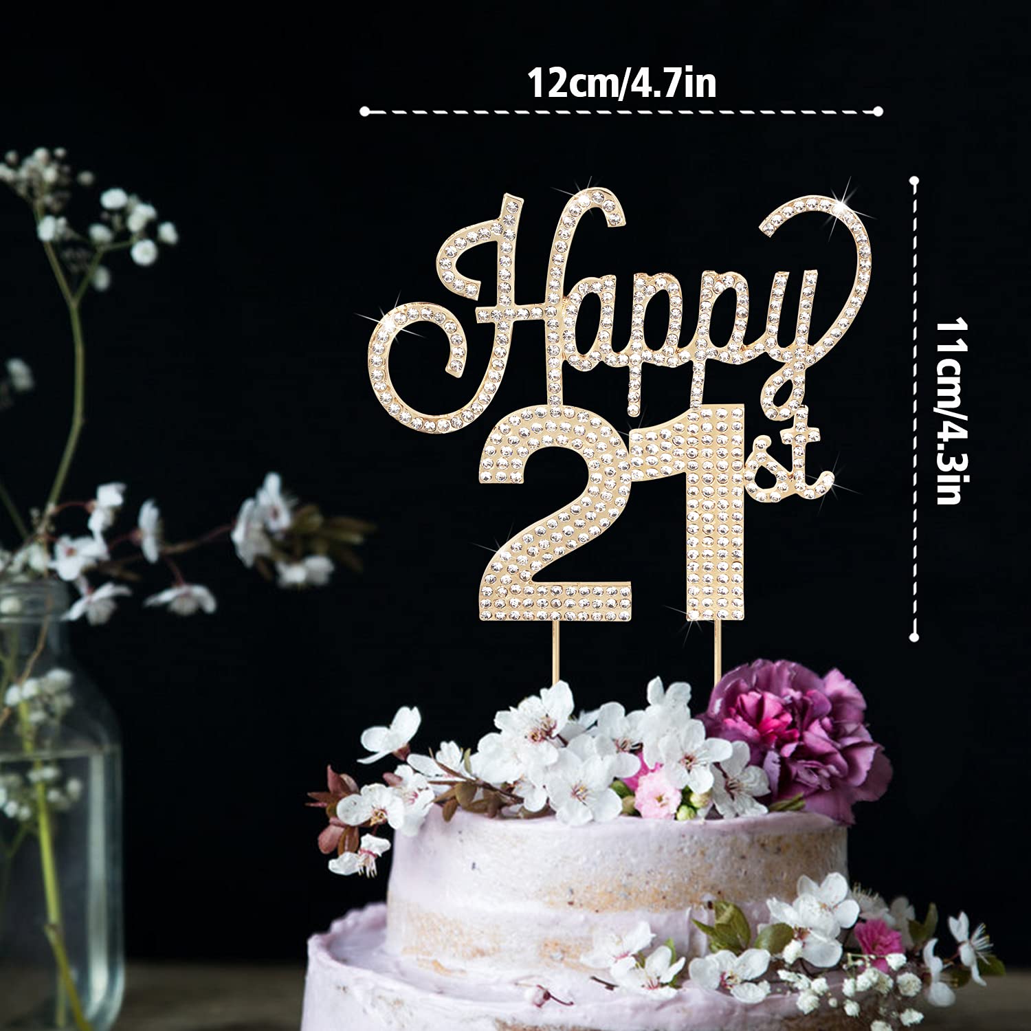 Lingteer Happy 21St Birthday Gold Rhinestone Cake Topper - Cheers To 21St Birthday 21 Years Old Party Cake Centerpieces Topper D