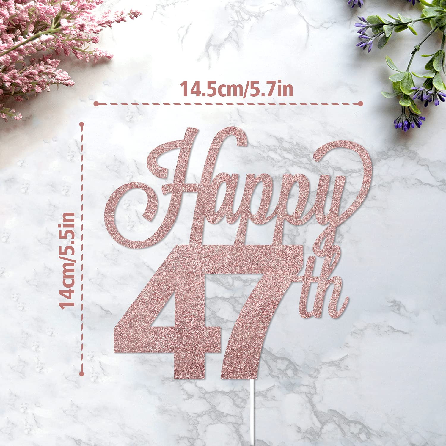 Q: What material is the LINGTEER Happy 47th Birthday Cake Topper made of?A: The LINGTEER Happy 47th Birthday Cake Topper is made of thick rose gold paper, featuring glitter details that enhance its visual appeal.