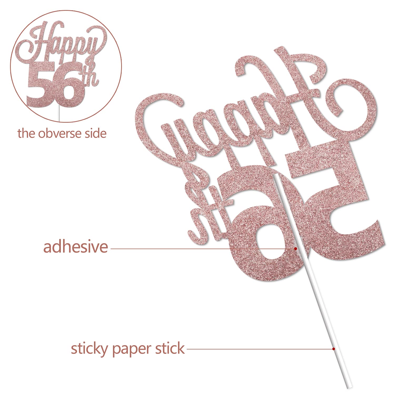 Q: What materials is the LINGTEER Happy 56th Birthday Cake Topper made of?A: The cake topper is made of thick rose gold paper with glitter details, ensuring a beautiful and eye-catching appearance for your birthday celebration.