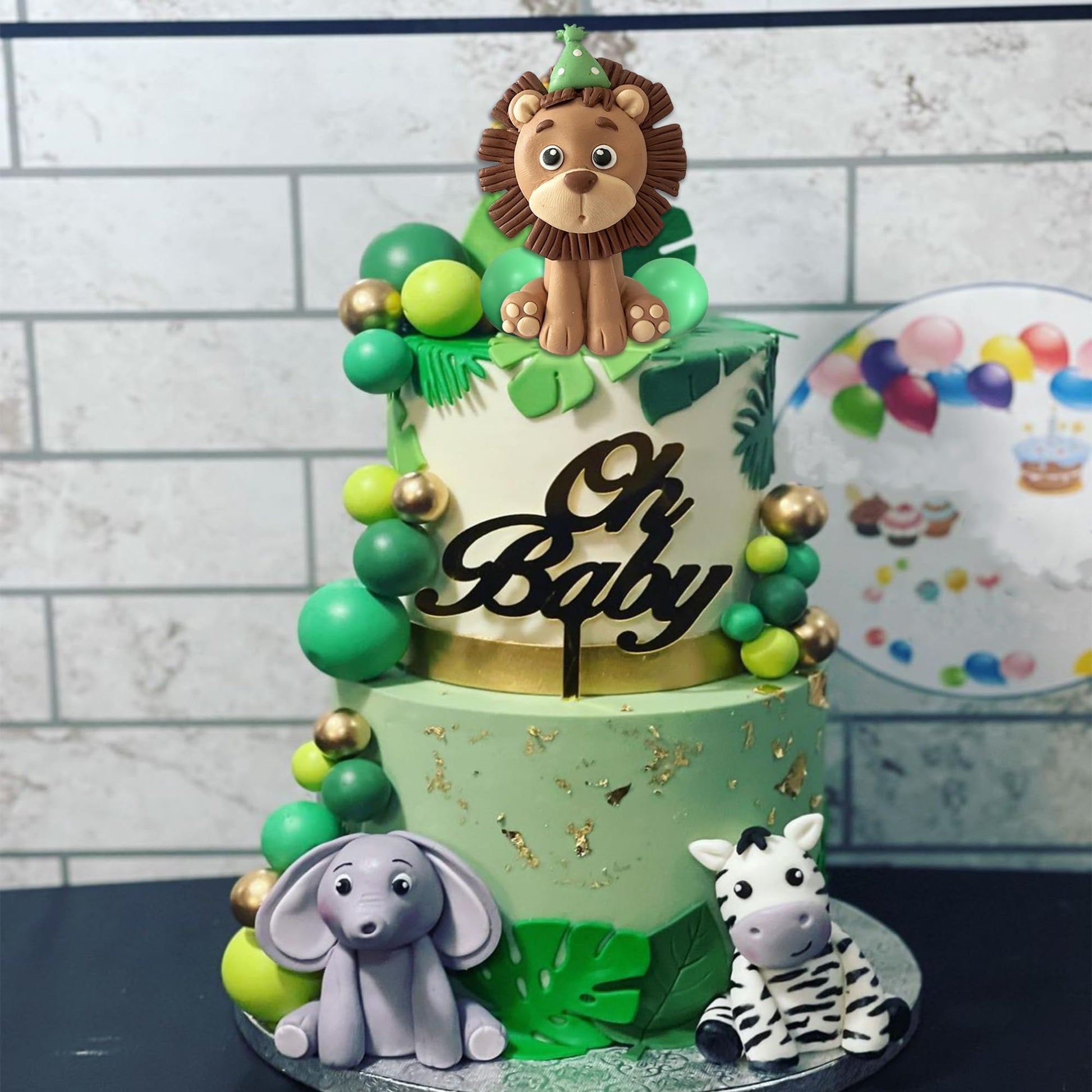 • Q: What sizes are the Lion Safari Jungle Animal Cake Toppers? A: The Lion Safari cake topper has dimensions of 5.7 inches in length and 5.7 inches in width, making it a perfect size for various cake types and party themes.