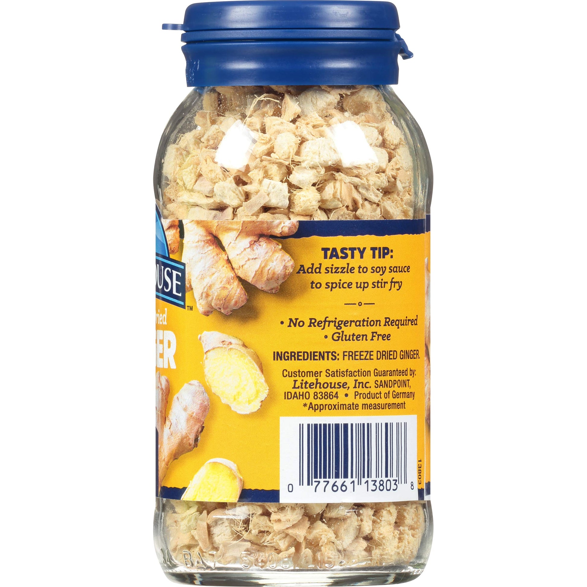 Freeze Dried Difference - All Of Our Herbs Are Harvested At Their Peak Freshness And Loaded Into Our Freeze Drying Tunnels That Help Preserve The Bold Color, Taste, & Aroma | Substitute & Enjoy - Simply Substitute 1 Tablespoon Of The Freeze-Dried Herb For 1 Tablespoon Of Fresh Ginger. Our Freeze Dried Ginger Complements Fresh Vegetables And Fish | High Quality Crops - Litehouse Herbs Are Harvested From The Highest Quality Crops Making Our Freeze Dried Ginger Non-Gmo, Gluten-Free, Vegetarian, & Keto Friendly | Tasty Tip - Litehouse Freeze Dried Ginger Is Packed With Bold Flavor And Aroma. Add It To Soy Sauce To Spice Up Stir-Fry | About Us - Our Mission Is To Deliver A Memorable Eating Experience, Positively Impact Communities, And Provide Employee-Owners With Opportunities For Success