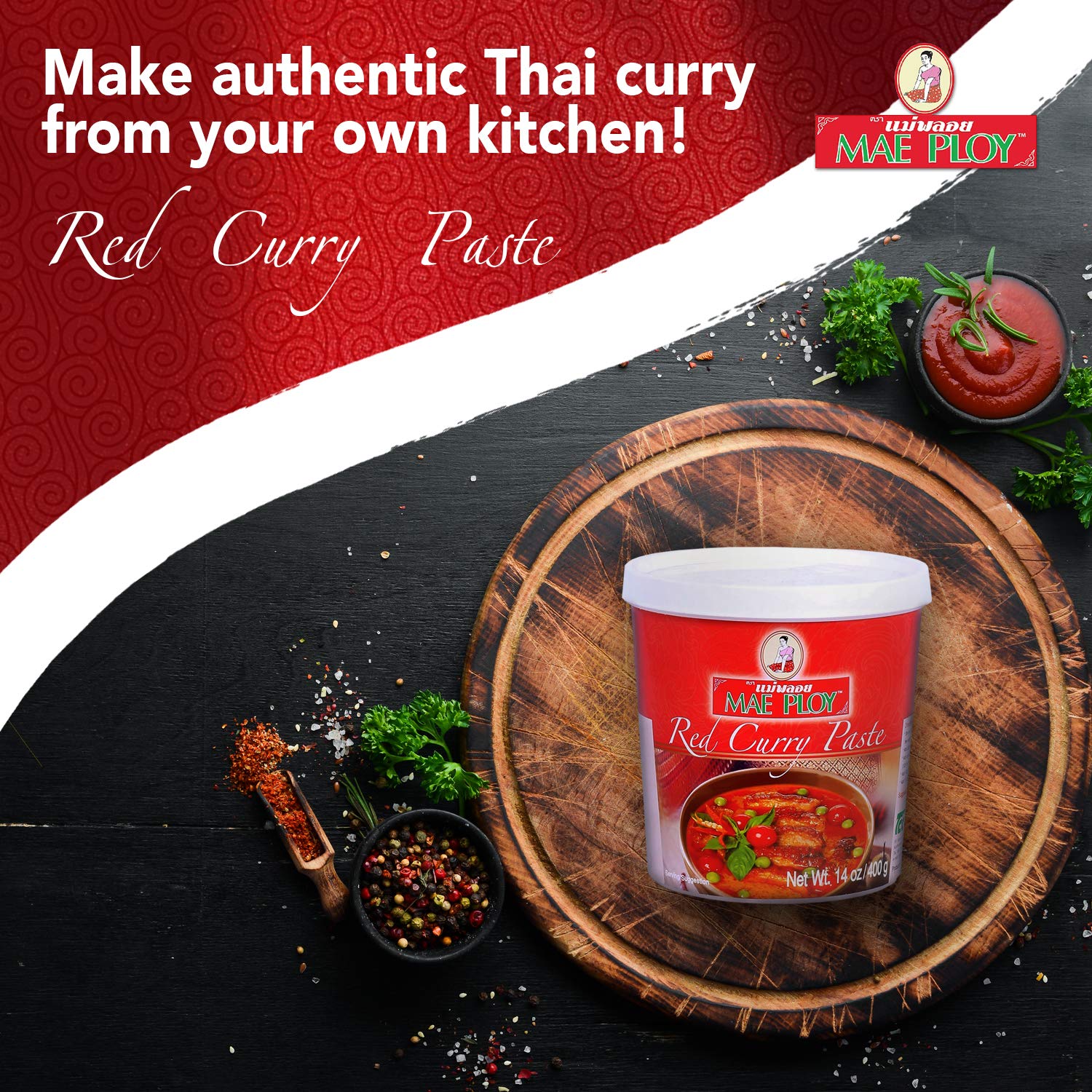 Mae Ploy Red Curry Paste, Authentic Thai Red Curry Paste For Thai Curries And Other Dishes, Aromatic Blend Of Herbs, Spices And Shrimp Paste, No Msg, Preservatives Or Artificial Coloring (14Oz Tub)